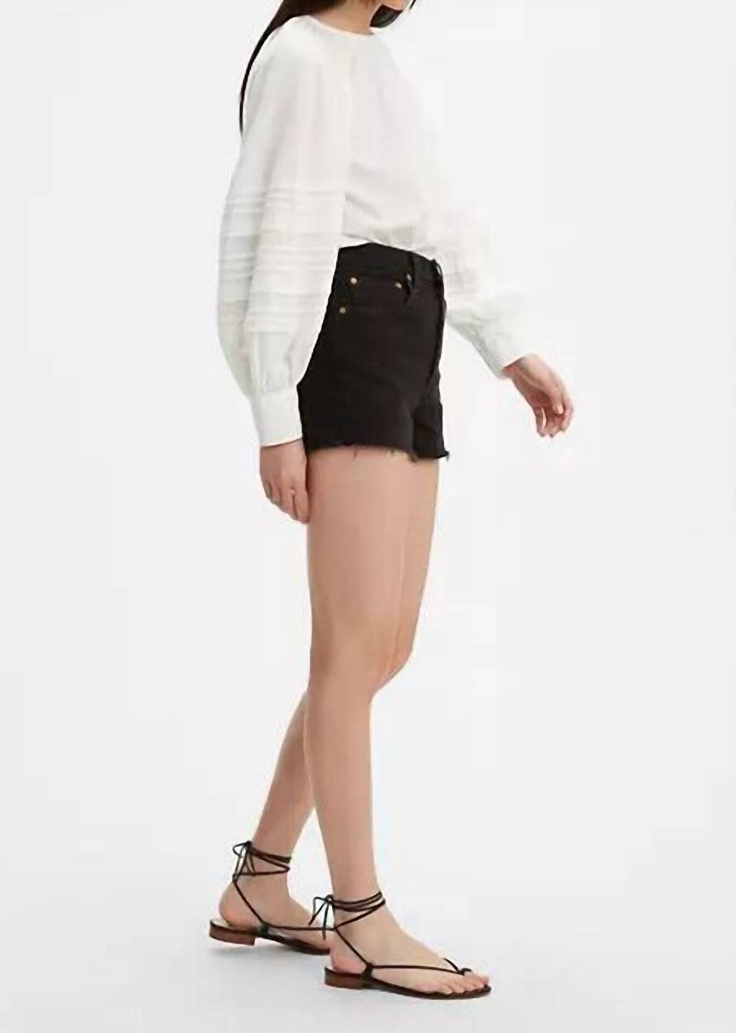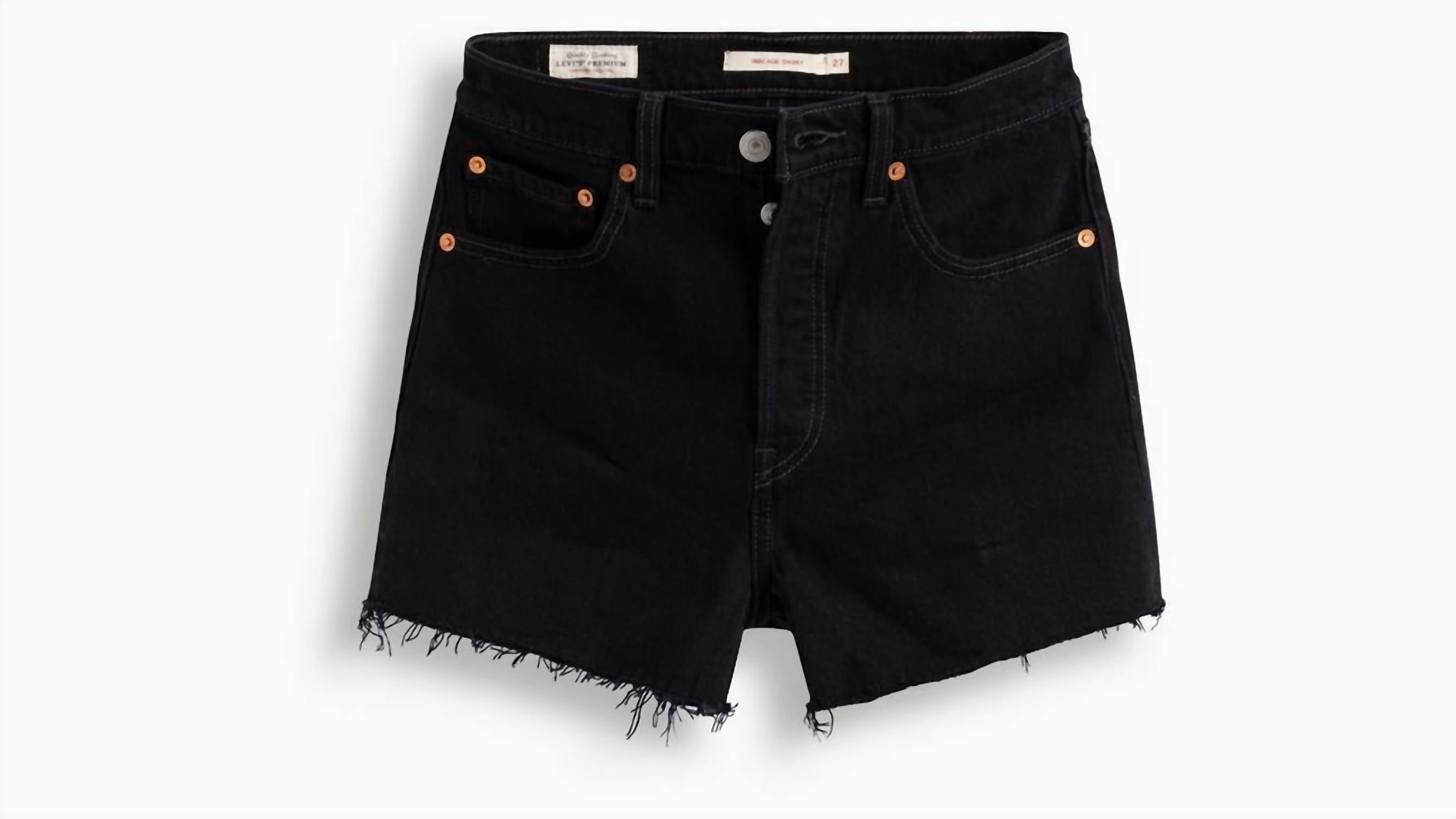 Fit to perfection, we love these high-waist shorts and you will too. Discover a blend of vintage style and modern design with the LEVI'S High Rise Button Fly Fringe Ribcage Shorts. These women's shorts boast a high waist and button closure, offering a chic silhouette with a 12" front rise and 15" back rise. Crafted from a cotton blend composition of 99% cotton and 1% elastane, they ensure comfort and a perfect fit. Detailed with allover shredded accents, contrast stitching, and a frayed hem in a black wash, these shorts feature a 2.5" inseam and 11" leg opening at the hip. The five-pocket silhouette and silver- and copper-tone logo hardware add a final touch of Levi's iconic style. Simply machine wash for easy care.