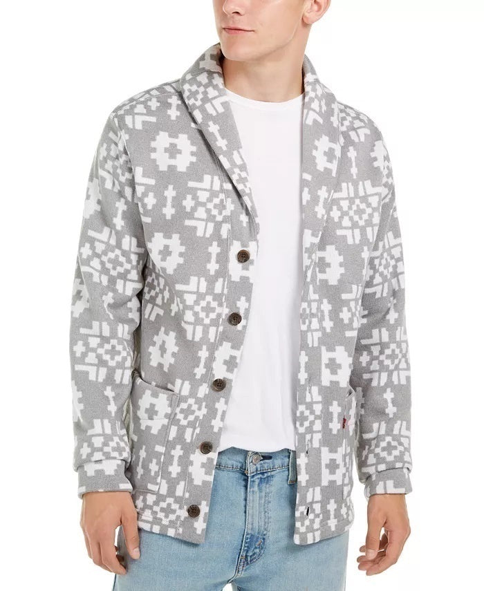 Levi's Men's Patterned Shawl Collar Sweater White Size X-Large