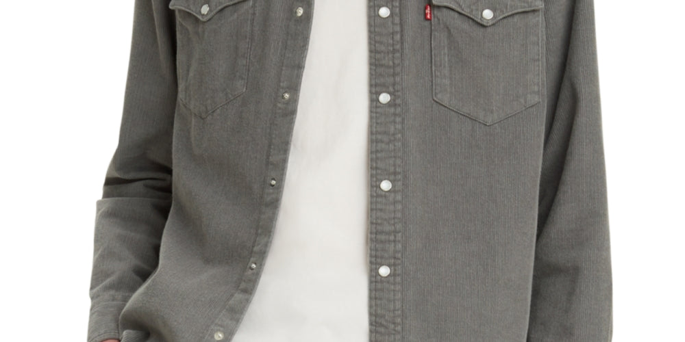Levi's Men's Standard Fit Western Corduroy Shirt Pewter Gray Size XX-Large