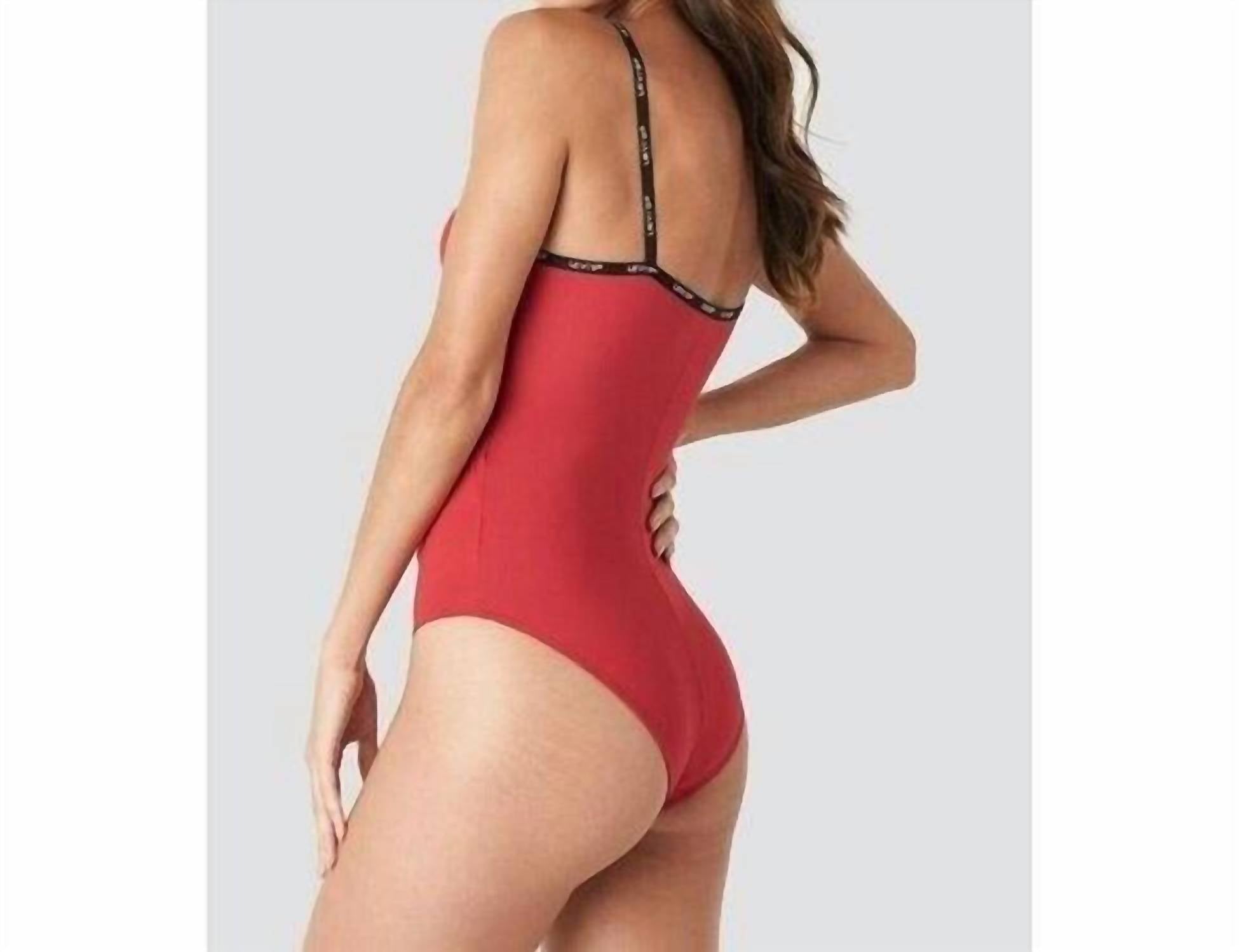 Form fitting and comfortable - this bodysuit check all of the boxes. Discover the Paige Brilliant Contrast Straps Bodysuit by LEVI'S, a perfect blend of style and comfort in a sleek red design. With its sleeveless silhouette and sleek square neckline, this bodysuit embraces a solid pattern and thin shoulder straps. Crafted from 88% Polyester and 12% Elastane, it offers an elastic fit that moves with you. Featuring a practical snap closure at the crotch, this piece ensures ease and versatility, making it a must-have in your wardrobe. It is machine washable for effortless care.
