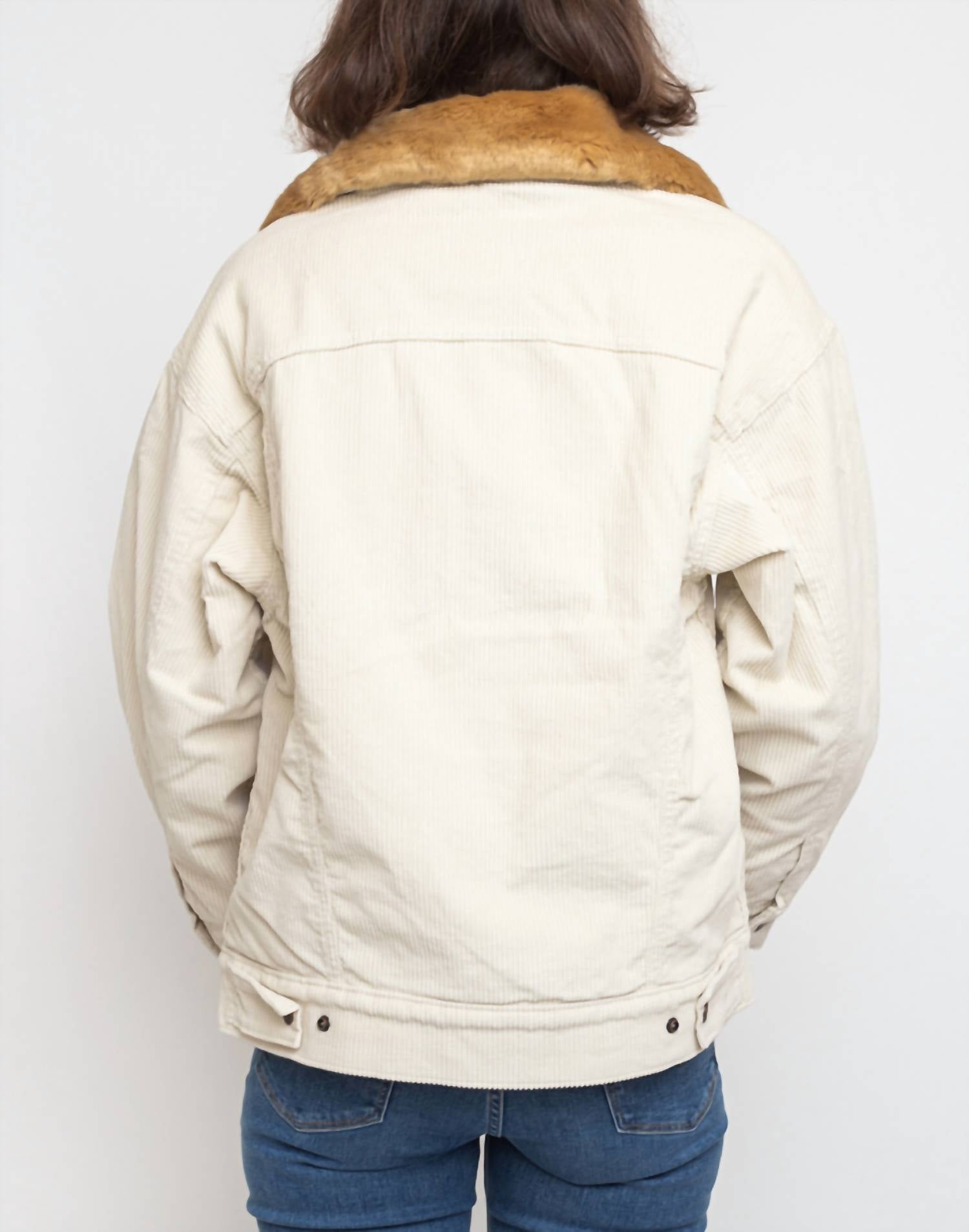 Classic, cool and works with almost any outfit choice. Perfect blend of vintage charm and modern style. Crafted from 98% cotton and 2% elastane. Features a textured pattern and a faux fur collar that adds a unique touch. Includes long sleeves with button-fastened cuffs and two chest pockets. Secured with a classic button closure.