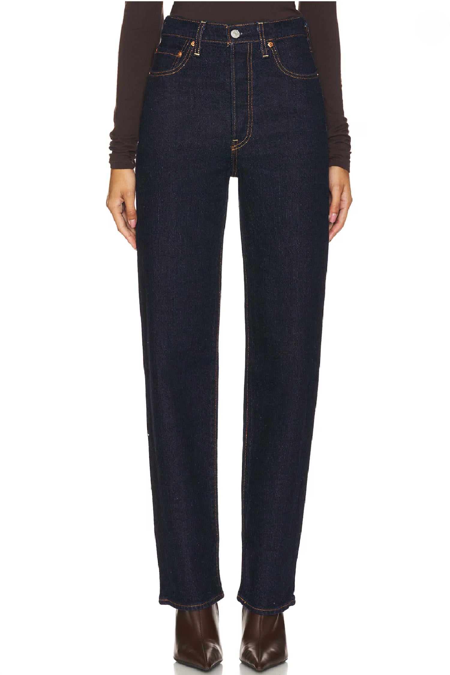 Pair these straight leg jeans with flats, sandals or even heels! You can't go wrong. Step up your denim game with the Ribcage Full Length Jeans by Levi's®. These straight-leg jeans feature a soaring 12-inch high rise and a 32-inch inseam, designed to slim the hips and define the waist. Crafted from a cotton blend of 99% cotton and 1% elastane, they offer both comfort and flexibility. Closure is secured with a button fly, and they are machine washable with tumble dry instructions, ensuring easy care.