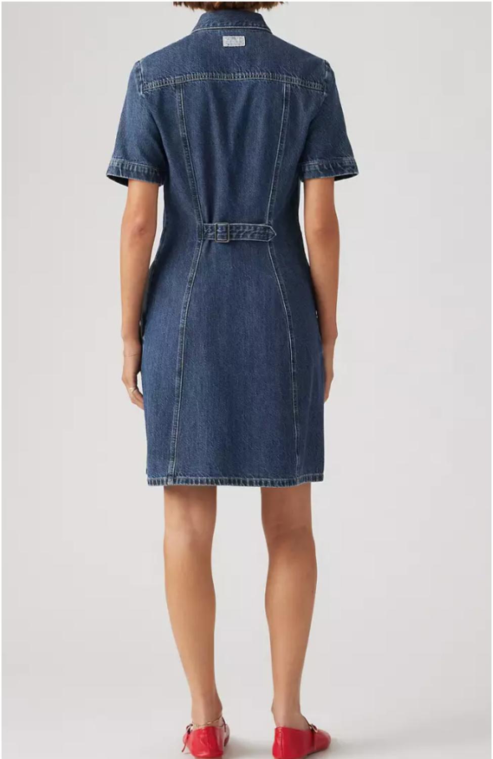 Meet the Rinoa Denim Dress by LEVI'S, an epitome of 90s fashion perfect for your summer vacation wardrobe. Crafted from 100% cotton denim, this casual dress features a classic point collar and short sleeves. The dress offers a neat button-up front closure for easy wear. For care, simply machine wash and tumble dry.