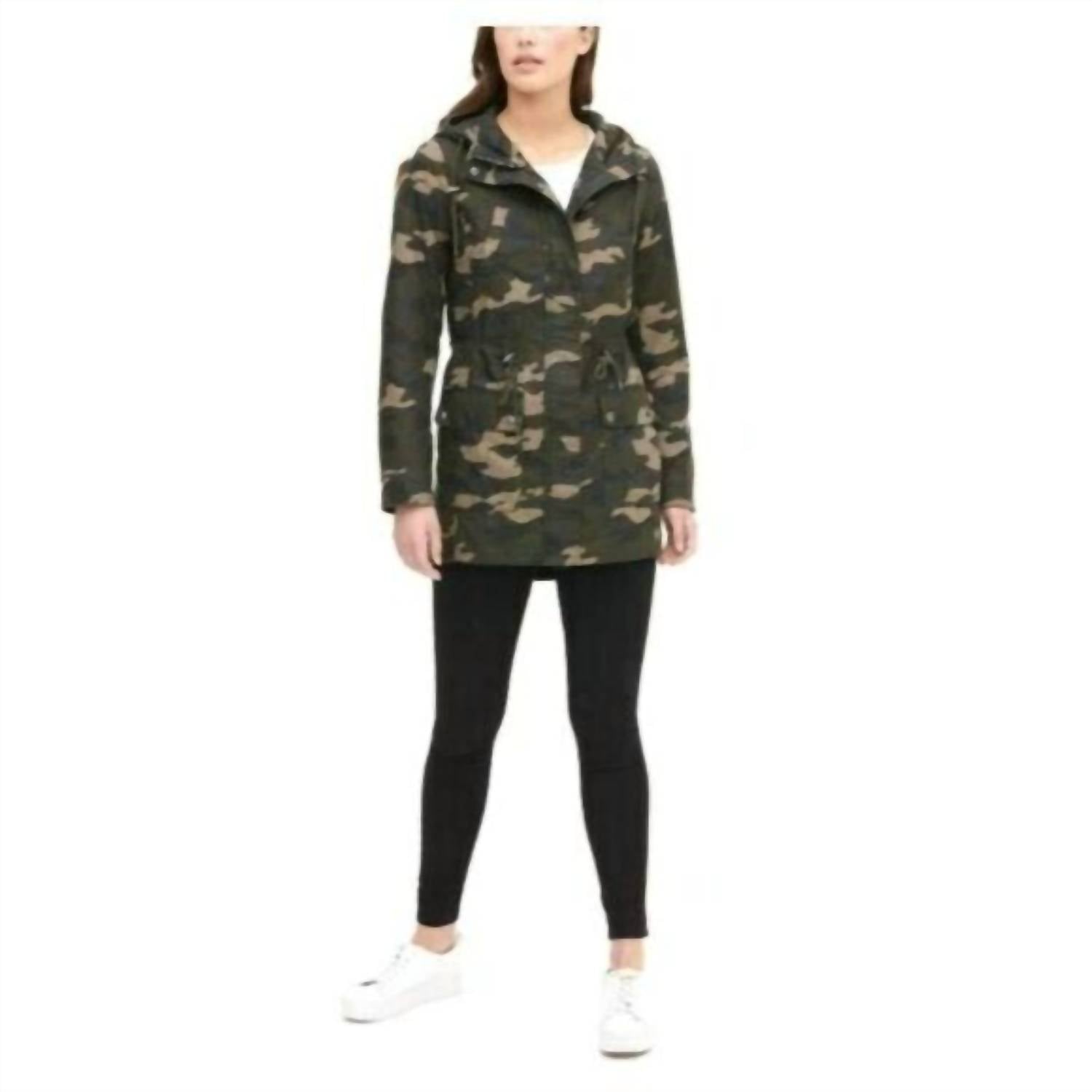 Whether you're running around town or lounging at home, this sweatshirt works for both. The Jess Cotton Fishtail Camo Print Hooded Parka Jacket by LEVI'S offers a blend of style and functionality. This utility jacket features adjustable roll-up sleeves and brushed cotton printed twill for added texture and durability. It's composed of 100% Cotton with a practical zipper closure, adjustable waist, and a versatile length of 31" to 34". Care for this piece is easy with machine wash instructions, while the true-to-size fit ensures comfort with measurements of shoulder 16", chest 20.75", and sleeve 24.25".