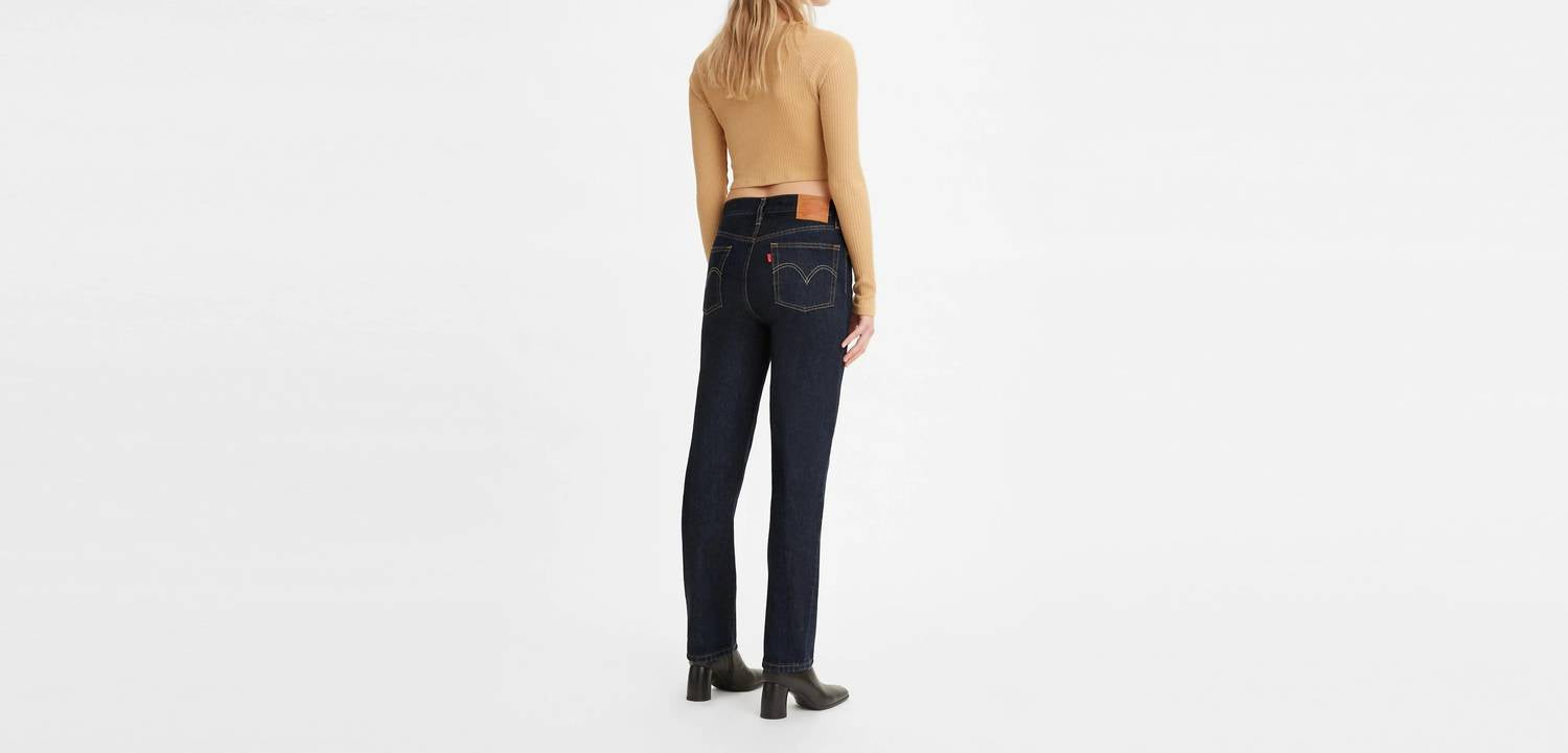 Pair these straight leg jeans with flats, sandals or even heels! You can't go wrong. Crafted from premium cotton, these jeans in the Deep Breath color showcase a high-rise waist and a classic straight leg for a timeless look. Designed with a regular fit and featuring a convenient zip closure, they also include pockets for added functionality. Easy to care for, simply machine wash and tumble dry for effortless maintenance.