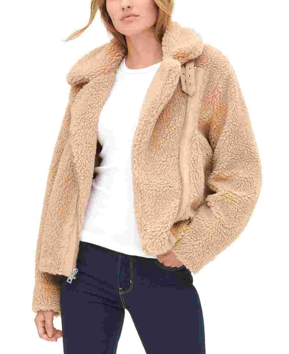 Notched collar; asymmetrical front zipper; buckles at front collar|Zipper welt pockets at front|Lined|Shell: polyester; lining: polyester|Machine washable