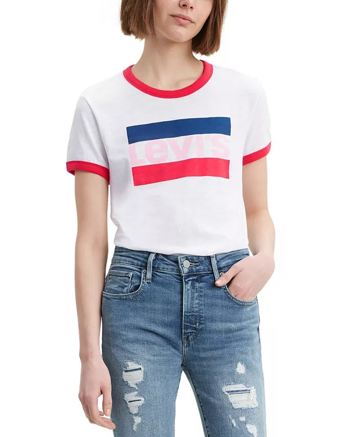 Levi's Women's Cotton Logo Ringer T-Shirt White Size Medium