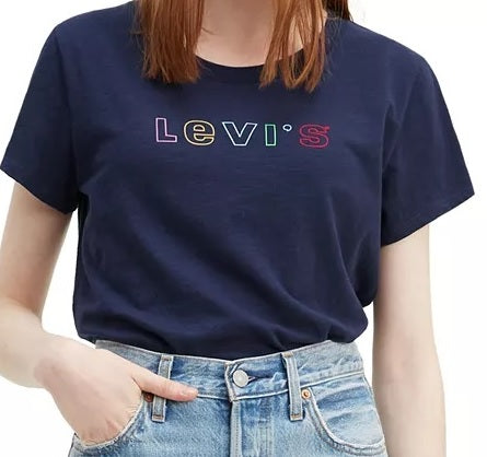Levi's Women's Cotton Rainbow Logo Graphic T-Shirt Navy Size Large
