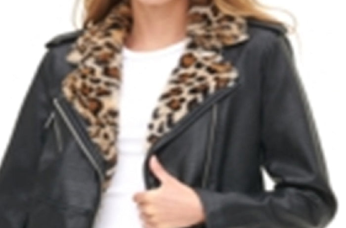 Levi's Women's Oversized Faux Leather Moto with Faux Fur Lined Lapels Jacket Black Size X-Large