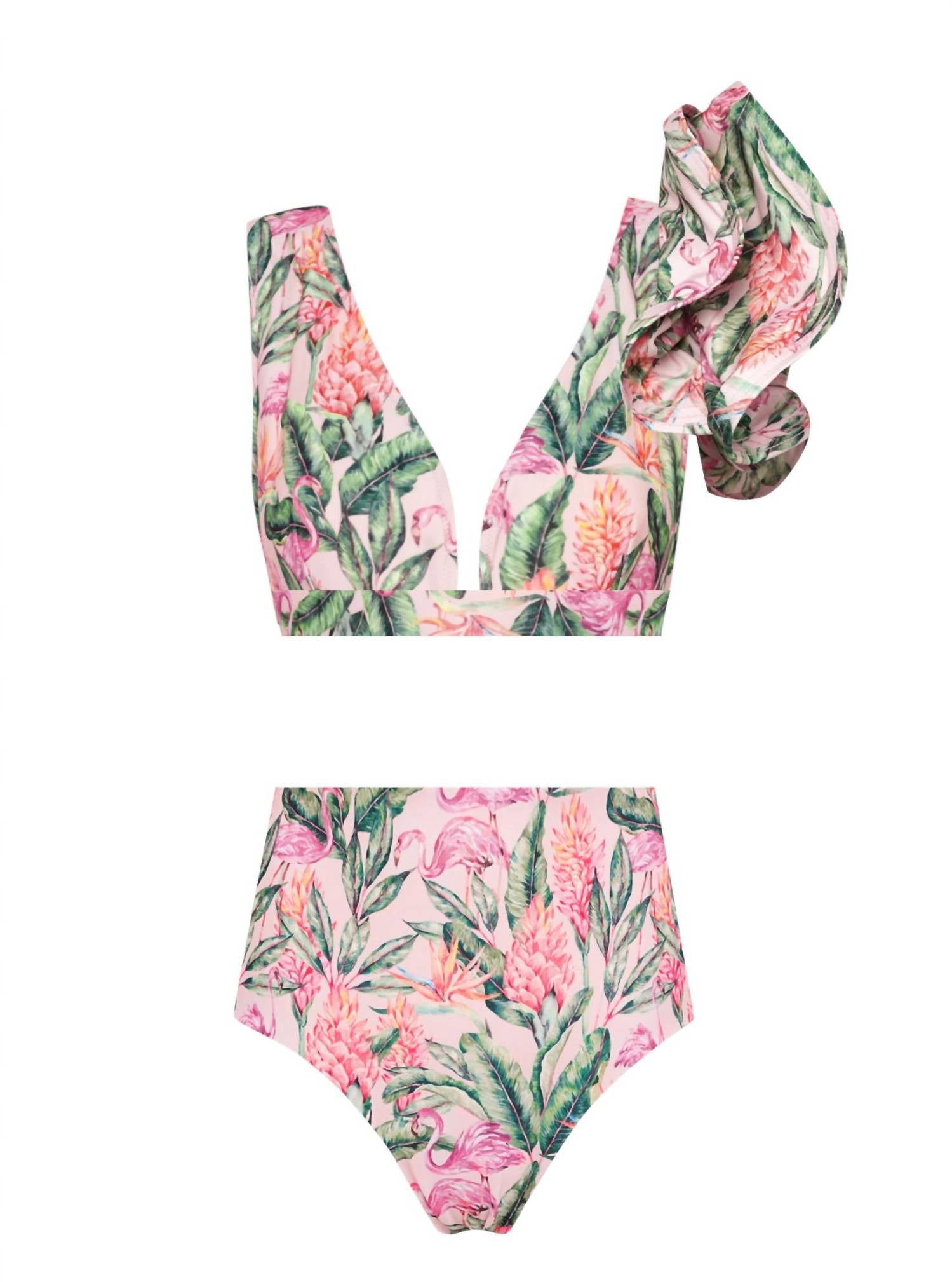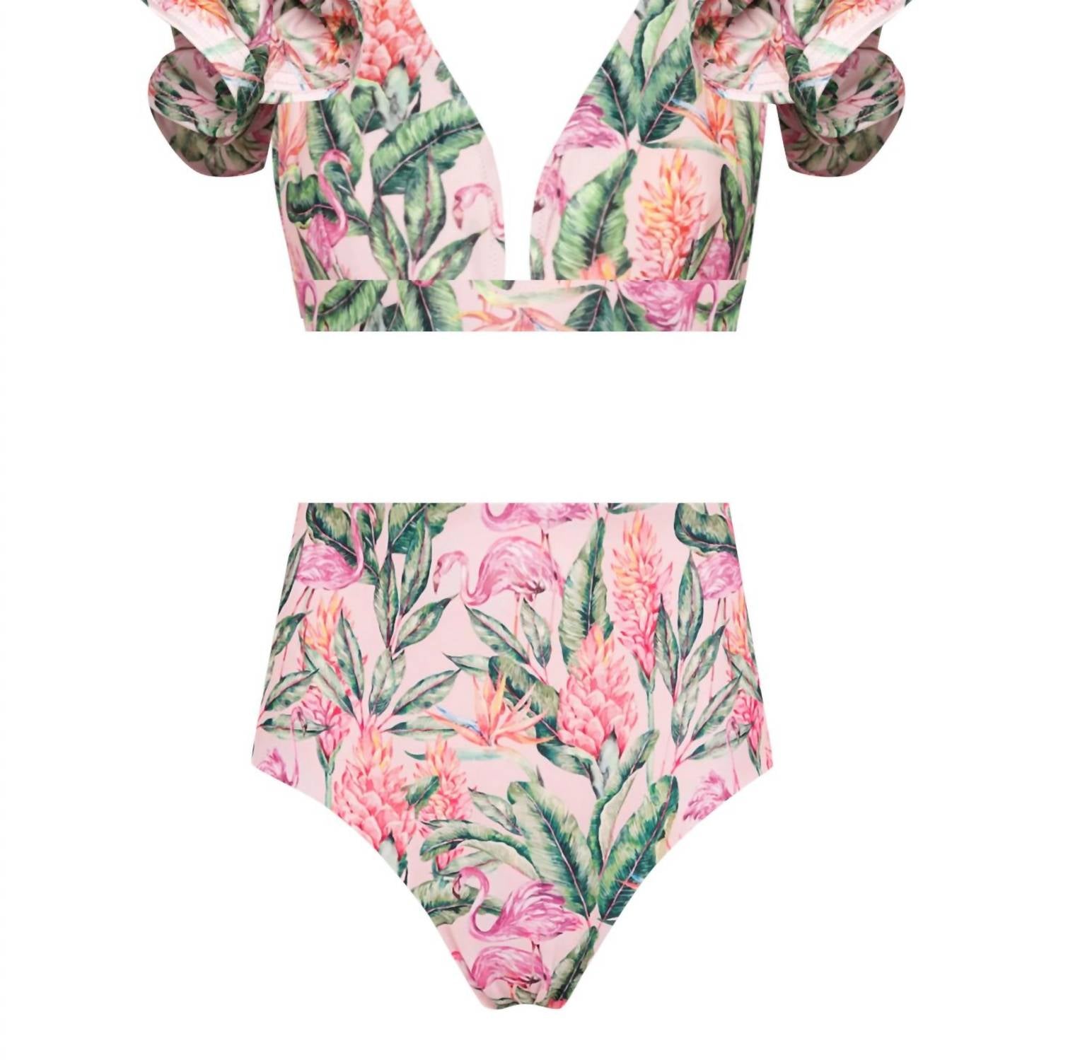 Discover the Lia Sahara Push Up Bikini Top, perfect for mixing and matching in your swimwear wardrobe. With its sports bra comfort and adjustable bow tie back, this patterned triangle top offers both style and support. Crafted from 78% recycled polyester and 22% elastane, it provides a push-up effect and removable pads for a personalized fit. Enjoy family matching prints with coordinating swimwear for everyone. Care for this eco-friendly swim top with machine washing. This listing is for the bikini top only. Diva ruffles, puffed sleeves and bikini Bottoms sold separately.