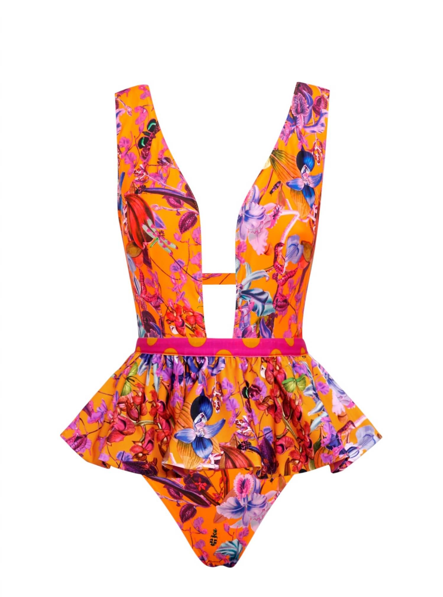 The perfect belt can really tie an outfit together and this one is no exception. Classic in its design and built to last, this belt can complement any outfit. Introducing the Women's Reversible Ruffle Belt by Lia Sahara, an ideal accessory to elevate your swimwear look. This versatile belt features two fantastic prints: Orchid Rush and Fuchsia and Orange Polka Dots, offering compatibility with various swimsuit styles. Crafted from 78% recycled polyester and 22% elastane, it provides a gentle stretch and comfortable fit. Designed without closure, it effortlessly adds a touch of flair to any beach outfit. Enjoy family matching prints with coordinating swimwear for everyone.