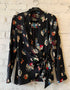 Elevate your evening ensemble with the Women's Nina Simone Floral Wrap Jacket by Libertine, a stunning addition to your summer wardrobe. This blazer features long sleeves and a charming tie closure, perfect for a boho chic look. Crafted for women, it showcases a graphic pattern in a striking black and multi-color scheme. Ideal for evening events, this piece comes with a collar neckline, embodying both style and sophistication.