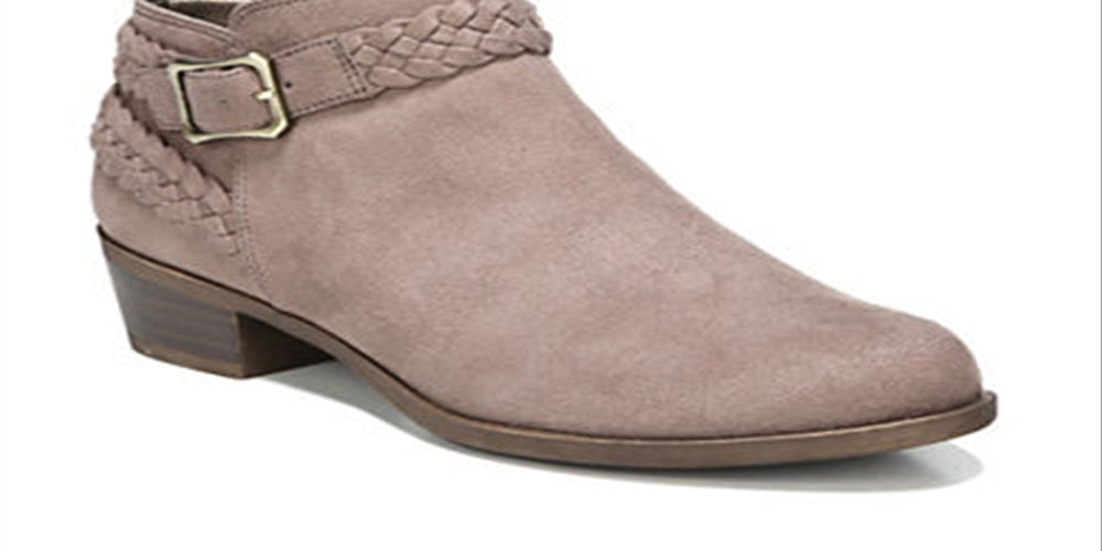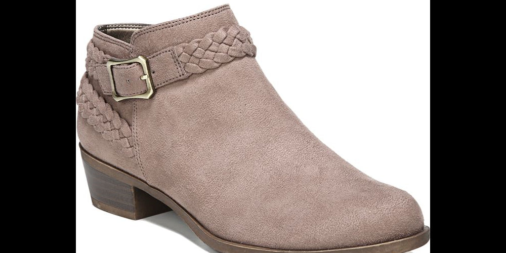 A classic bootie made new with modern details. Fabric or faux leather upper with round toe| decorative buckle at ankle and wraparound braided detailing. Soft System® comfort package provides all-day support| flex| and cushioning. A plush layer of Velocity with Memory Foam® cradles your foot. Traction sole provides you with extra stability. Just Right Height 1 and ¼ inch heel.| 1.38 heel| shaft height; 4.09|circumference; 10.24