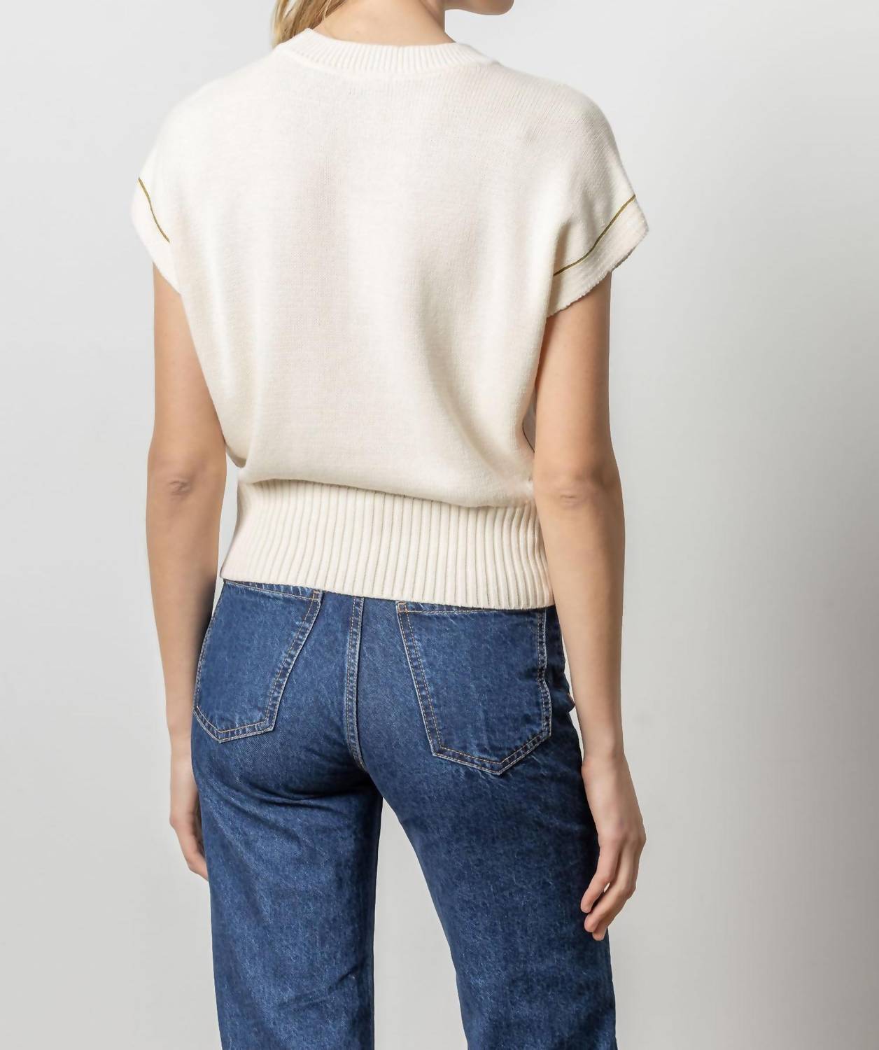 The ultimate go-to sweater, expertly crafted to provide the perfect combination of warmth and style. Its classic design and soft fabric make it a must-have addition to your wardrobe. Introducing the Wedge Pullover Sweater by Lilla P, designed in a chic cream color to transition you smoothly into fall. This women's crewneck features cap sleeves and a stylish textured pattern. Crafted from a 60% cotton and 40% polyester blend for a mid-weight feel, it boasts a length of 20 1/2" (size Medium) with a slightly shorter body that complements high-waisted bottoms. The relaxed fit and contrasting chain stitch detail add a touch of sophistication. Closure: Pull on. Care: Hand wash. The model is 5'10" and wears a size Small.