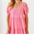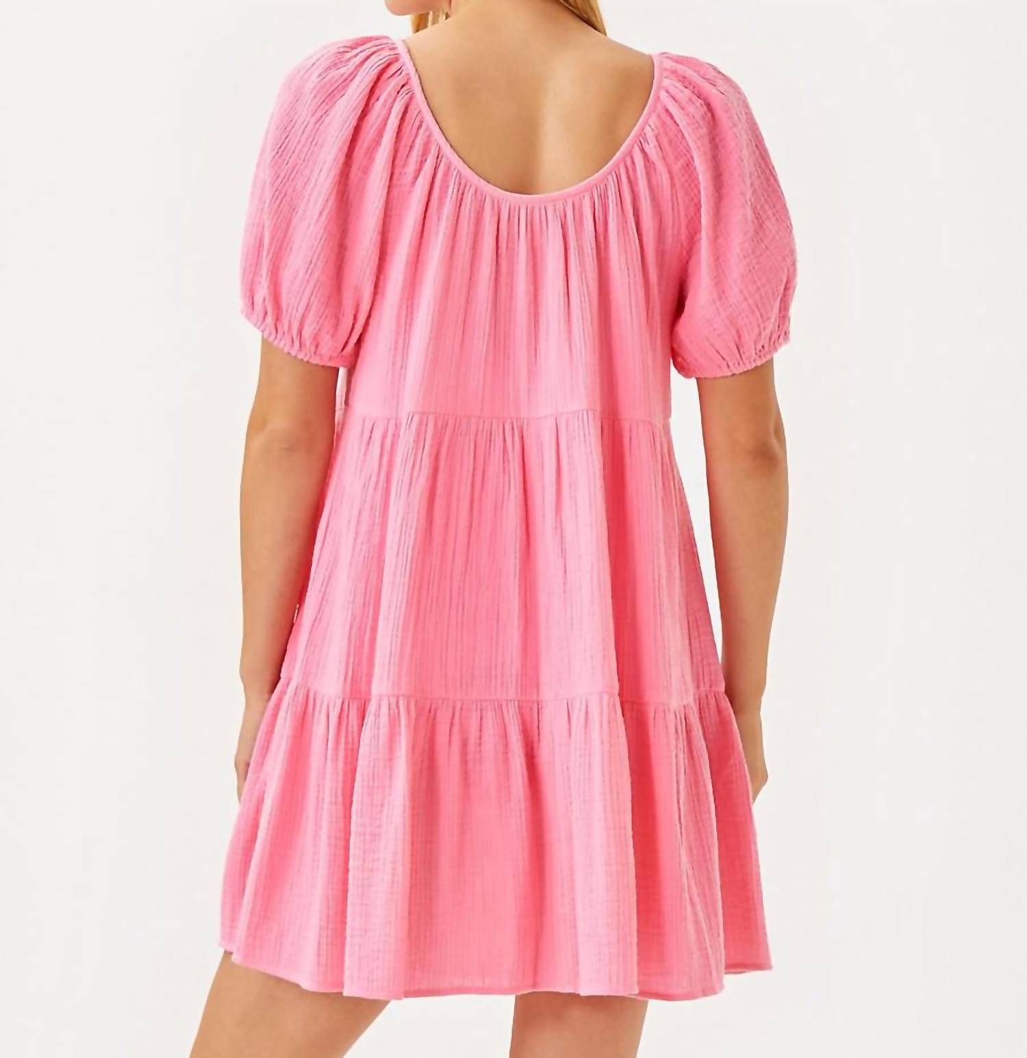 The Zemini Coverup Dress by Lilly Pulitzer is a stylish and essential piece for any beach day. Featuring short sleeves and a textured pattern, this mini dress in vibrant Rousseau Pink offers a flowy and easy fit with a tiered skirt. Crafted from Cotton and measuring 35 1/2" from the top of the shoulder to hem (based on a size small/4), it skims the body with a roomier fit for added comfort. This imported coverup is machine washable, ensuring easy care and maintenance.