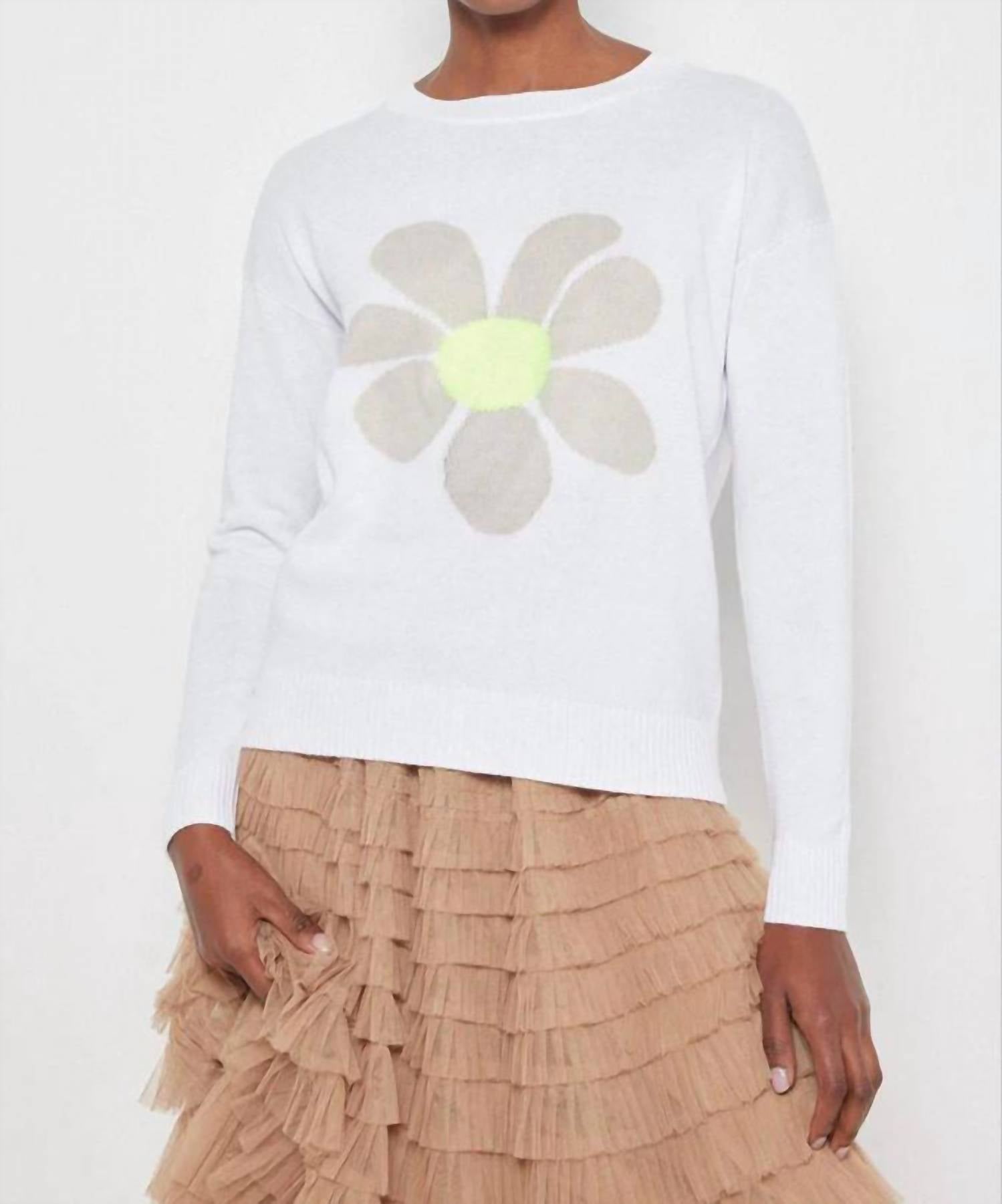 A classic fit that works just as good buttoned as it does left open. Elevate your style with the Women's Sweet Talk Sweater by LISA TODD, a whimsical piece designed for the modern wardrobe. This long-sleeve crewneck sweater is crafted from 100% cotton, showcasing a playful intarsia flower pattern set against luxurious white. Its monochrome trend ensures you're both chic and cozy, ideal for a spring vacation. Closure: Pull-on.