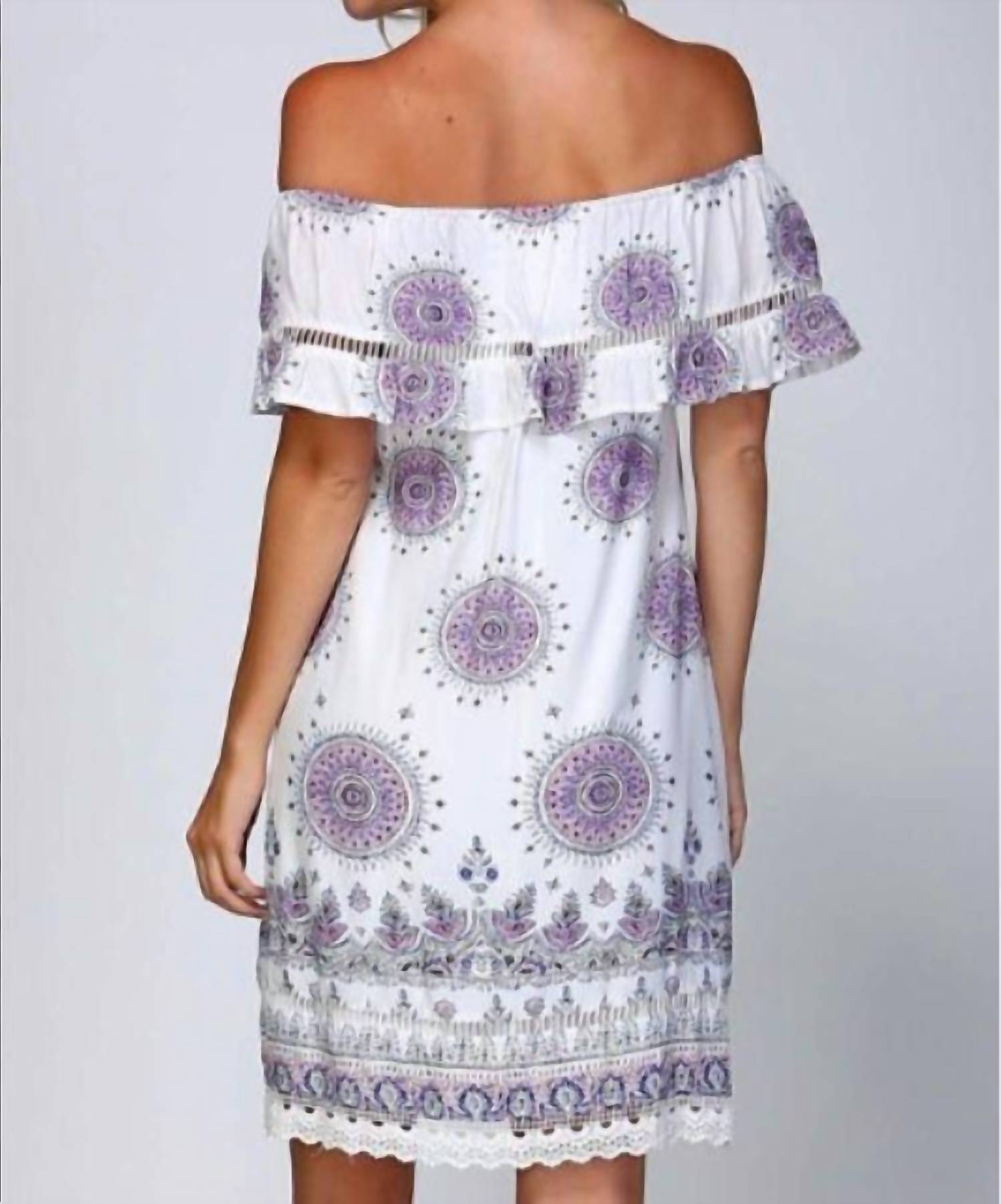 The kind of easy and flattering dress you'll be reaching for all season long. Embrace sunny days with the Listicle Mandala Medallion Cotton Sun Dress, a delightful addition to any summer wardrobe. This mini dress features a charming mandala floral print in ivory, complete with short sleeves and a flouncy layered neckline for on or off-shoulder styling, enhanced by soft elastic stretch. Crafted from 100% Cotton with a polyester lining, this shift dress is designed for an effortless pull-on wear. Care instructions include hand washing in cold water and line drying, ensuring its lasting beauty. With bust sizes ranging from 34-36-38 inches and a dress length of 33 inches, this piece is imported and perfect for any vacation occasion.