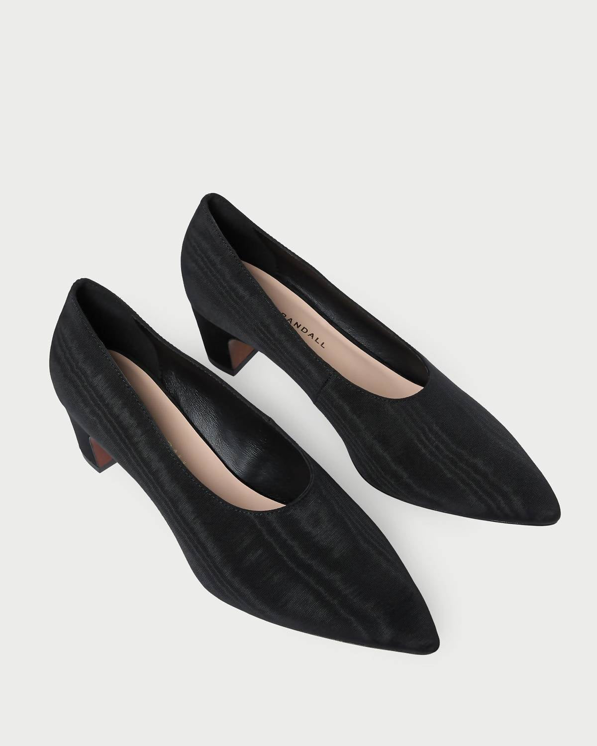 This sandal will take you from brunch to dinner and everything in between. Discover the Women's Maeve Low Pump Sandal by Loeffler Randall, a sophisticated choice for dinner parties with its black Italian moiré finish. Featuring a distinguished block heel that stands at a comfortable 2 inches, this sandal combines elegance with ease. The design boasts a pointed toe and a choked-up upper, enhanced by a padded leather footbed with an exquisite gold stamped logo. Perfect for summer, these sandals align with the quiet luxury trend, offering a medium shoe width for adults.