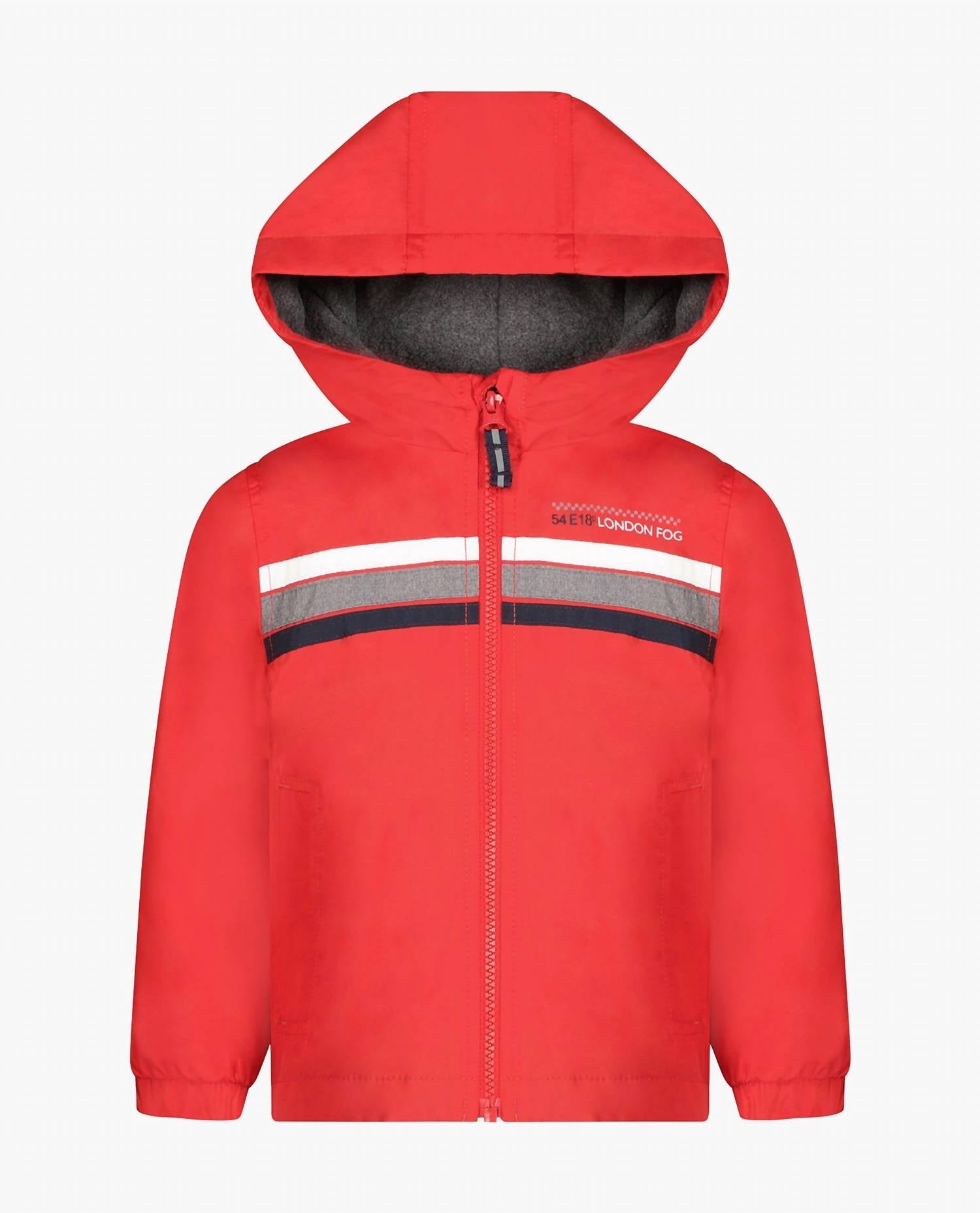 London Fog - Toddler Boys Zip Front Hooded Sporty Stripe Raincoat