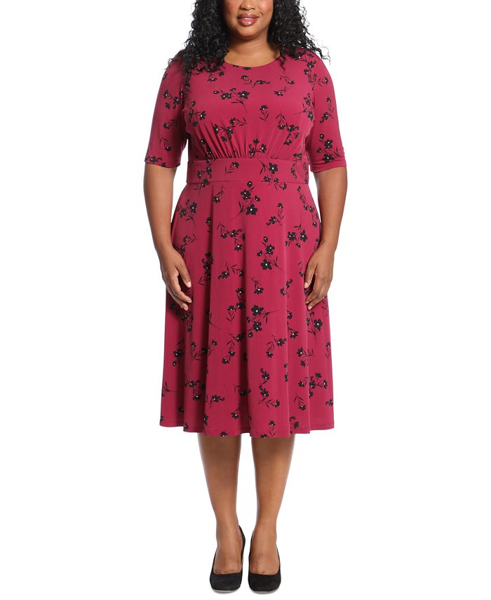 London Times Women's Three Quarter Sleeve Inset Waist MIDI Dress Pink Size 18W