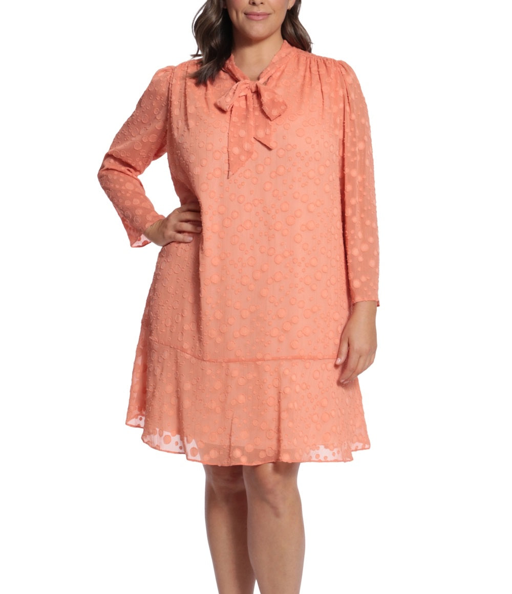 London Times Women's Tie Neck Shift Dress Orange Size 20W