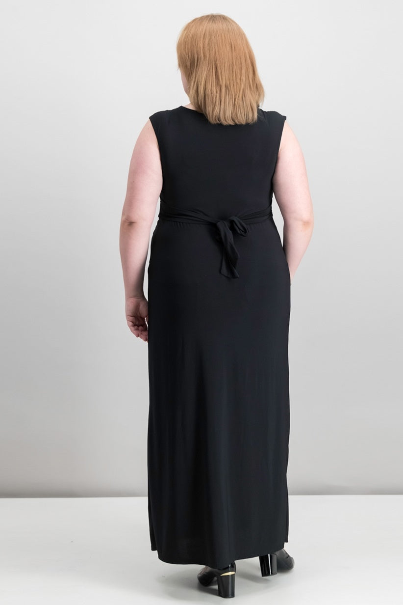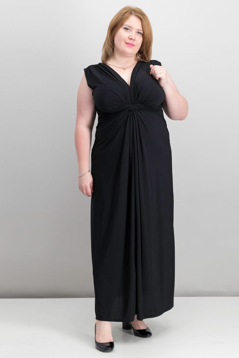 Approx. 56" long from center back to hem. Length is based on size 2X and varies approx. 1/2" between sizes.|V-neckline; maxi silhouette|Pullover style; no closures|Three-quarter sleeves|Knotted at bust with ruching|Empire waist; self-tie at back|The Maxi featured on The It List