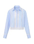 Introducing the Women's Delano Top by LoveShackFancy, a chic choice in the serene hue of Sky Lagoon. This button-down shirt features a textured pattern with long sleeves and a classic collar neckline, perfect for vacation vibes. Designed with minimalist flair, it seamlessly blends with your summer wardrobe essentials. Closure details are not provided, offering a clean and uninterrupted design.