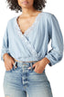Lucky Brand Women's Eyelet Faux Wrap Cotton Top Blue Size X-Large