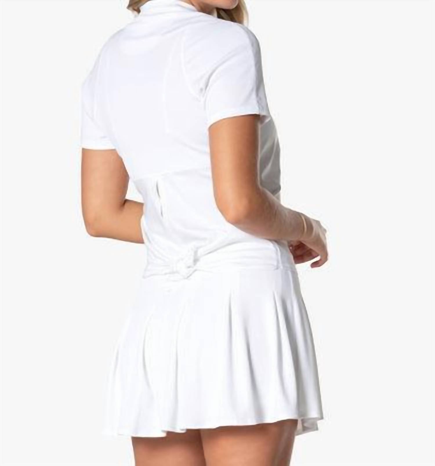 The short sleeve tee you'll want in every color. Elevate your workout wardrobe with the Women's Winning Streak Tie Back Short Sleeve Top by Lucky in Love. This chic athleisure piece features short sleeves and a flattering V-neckline in a crisp white with pink and blue accents. Designed for fitness or workout occasions, it offers a solid pattern and a convenient pull-on closure. Perfect for summer activities, it seamlessly blends style and functionality.
