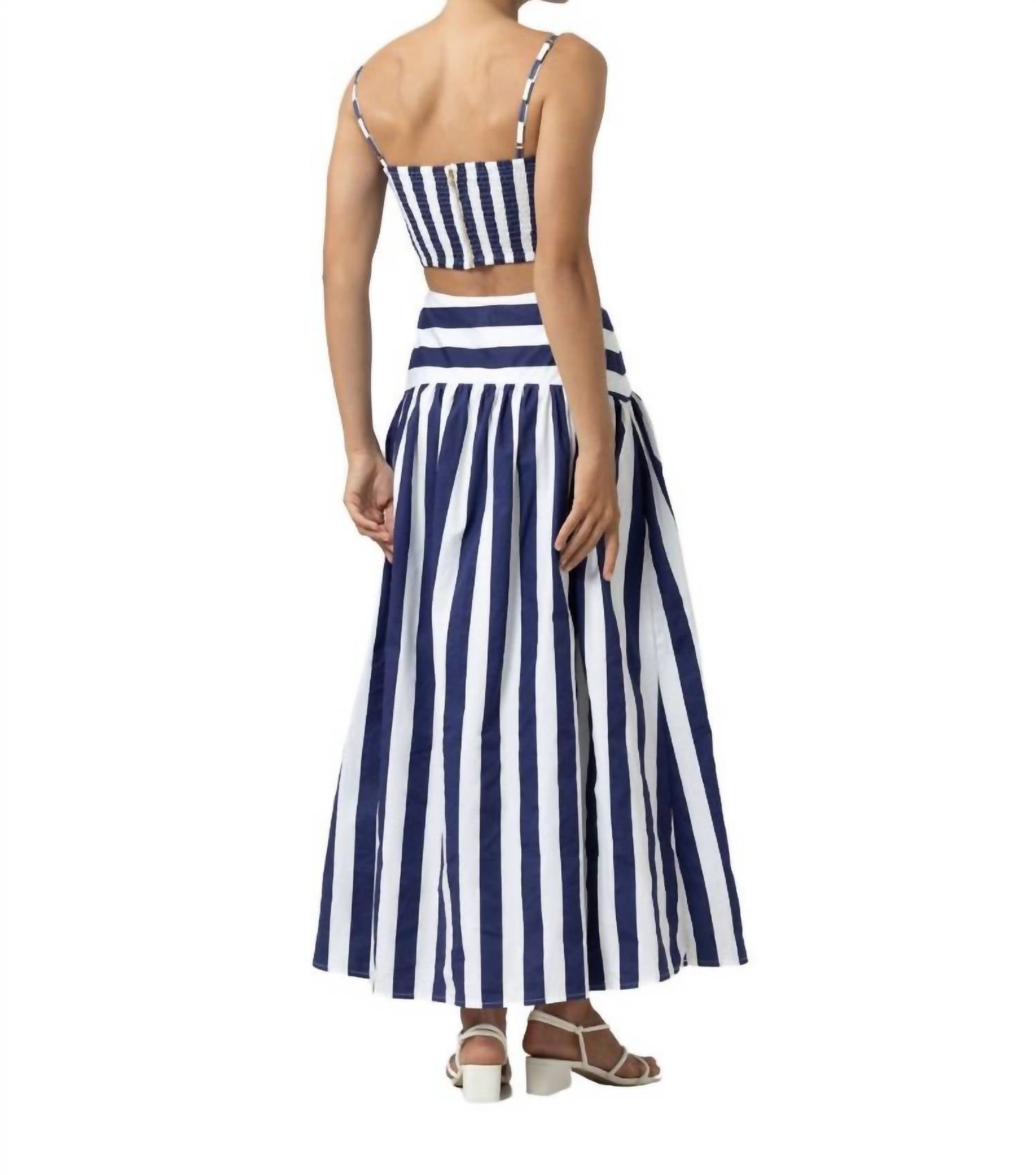 A versatile blouse that works from desk to dinner! Introducing the Oliver Poplin Square Neck Top by LUSANA, a stylish choice for spring getaways and festive occasions. Designed with spaghetti straps and a striking marine stripe pattern, this blouse features a square neckline and a fitted midriff. Made from 100% cotton poplin, it offers comfort and breathability, with a back metal zipper closure for easy wear. For care, hand wash and line dry to maintain its pristine condition.