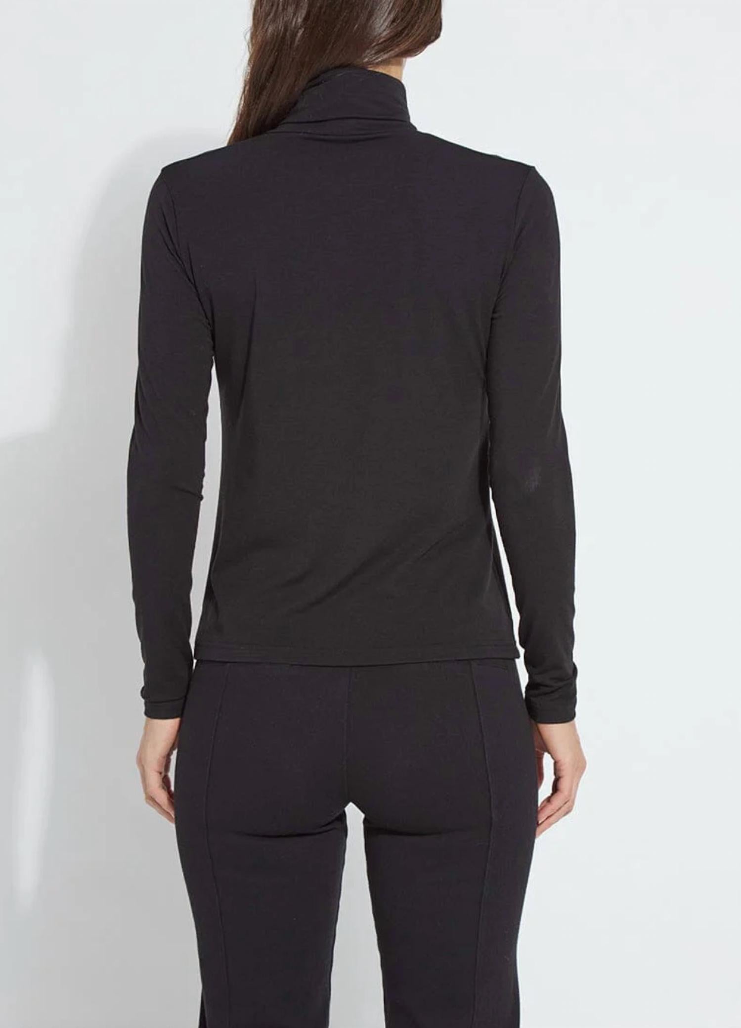 The perfect long sleeve tee that goes with just about anything. Introducing the Essential Longsleeve Turtleneck Tee by Lysse, a must-have addition to your fall and winter wardrobe. This black, long sleeve tee is crafted from a 4-way stretch blend of 61% Polyester, 34% Rayon, and 5% Spandex, providing a relaxed fit that feels both soft and stretchy. The high turtleneck neckline adds a touch of elegance to its solid design. Closure is by pull-on, and it's conveniently machine washable with a line dry, making it perfect for stylish travel or office attire.