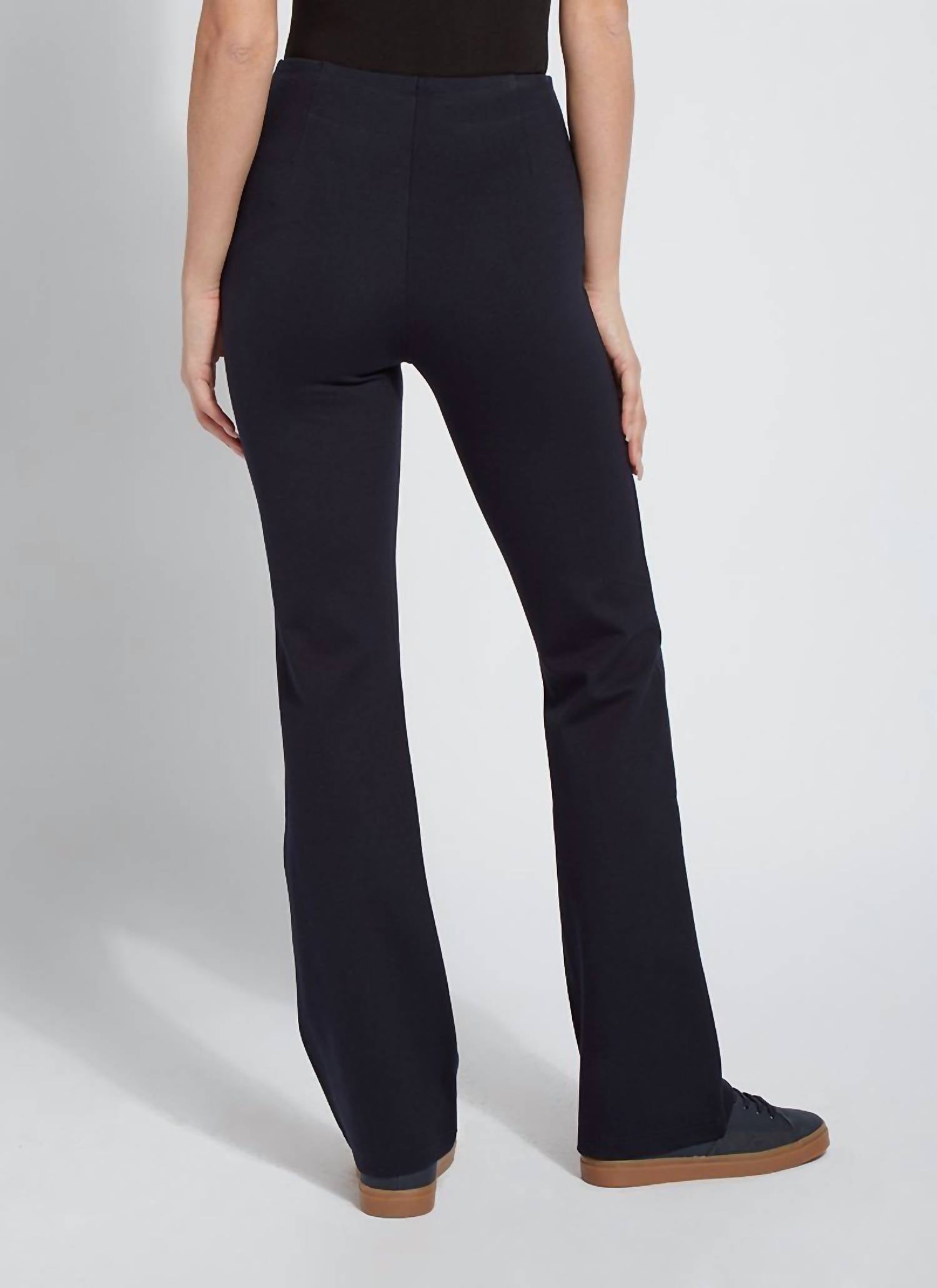Meet the Elysse Wide Leg Pants by Lysse, your ultimate wardrobe staple for style and comfort in navy Ponte. Designed with a high-rise pull-on closure, these pants feature a regular fit that skims the hips and thighs, transitioning into a flattering fit-and-flare leg with a 33" inseam. Crafted from a viscose blend, the fabric ensures a smooth silhouette with 360° smoothing technology, while the 4-way stretch adds superior flexibility. Care is effortless with machine wash cold and line dry instructions, keeping you chic and comfortable throughout your day.