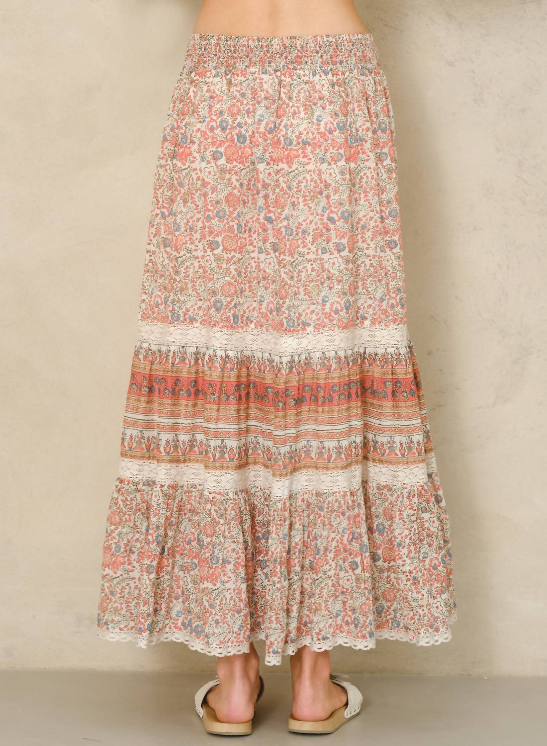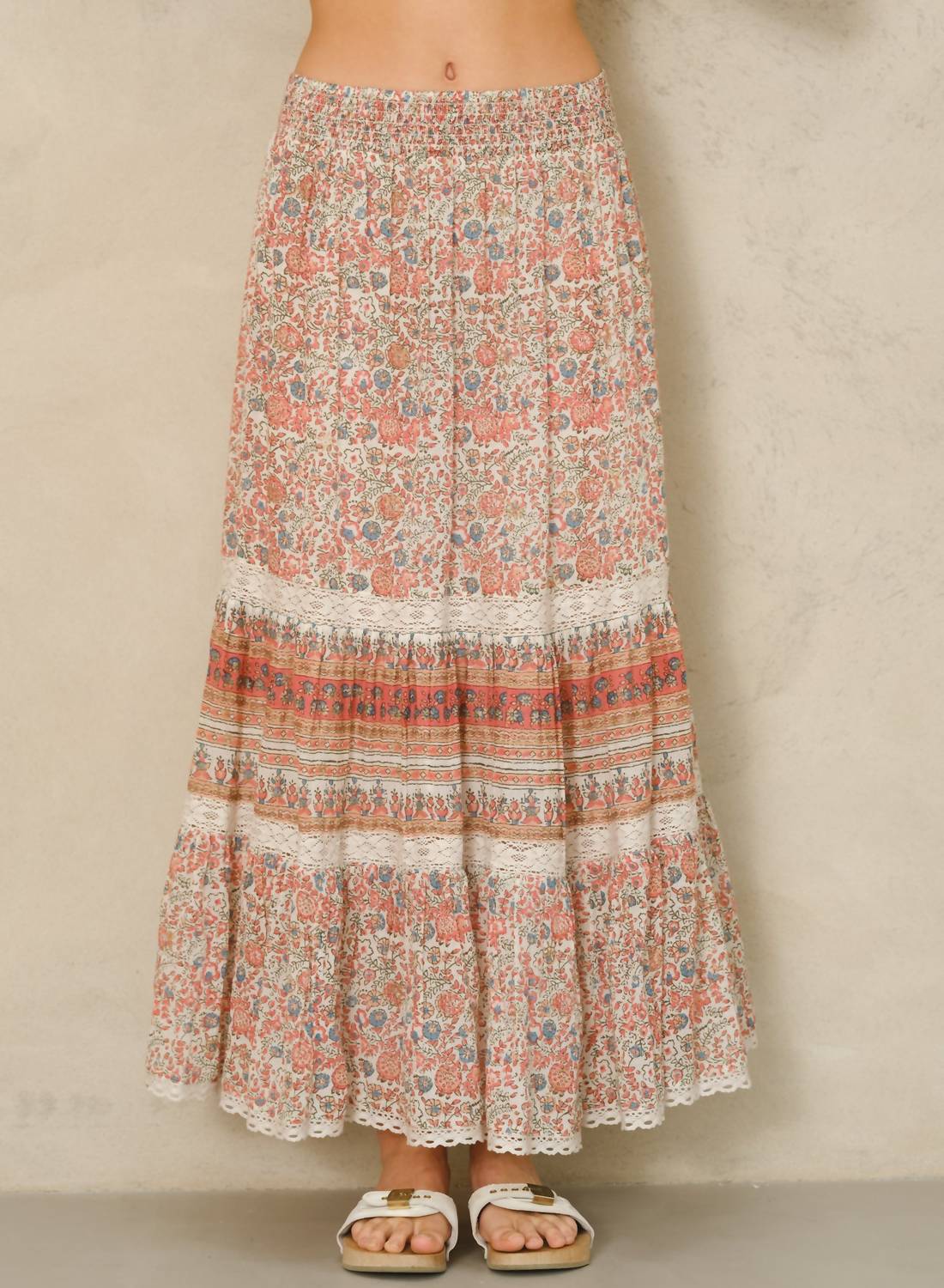 Flowy, comortable and stylish. This maxi skirt is a fan favorite. Step into summer with the Cass Print Maxi Skirt by M.A.B.E., an essential piece in vibrant coral. Featuring a lightweight cotton composition, this maxi skirt offers a flowing silhouette that exudes bohemian charm. Made with a pull-on closure for easy wear, its patterned design makes it perfect for vacation occasions. Ideal for versatile styling, it pairs effortlessly with the matching Cass top or a simple white tee.