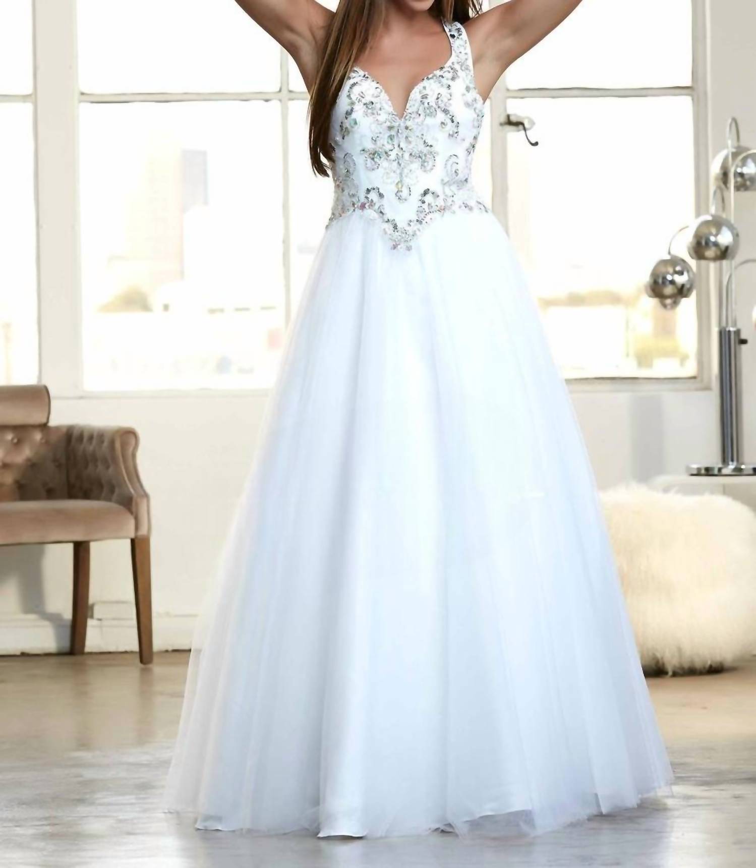 Turn heads in the cutest and most flattering evening dress. Introducing the Halter Ball Gown by Mac Duggal, an exquisite choice for prom in a sophisticated White/Silver hue. This sleeveless dress showcases a beaded bodice and elegant halter neckline, perfect for making a memorable entrance. Crafted in an A-line silhouette, it features a convenient zip closure for easy wear. Designed with no pockets, this gown is a timeless addition to your formal wardrobe.