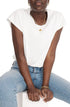 Features a crewneck and neat cap sleeves for a clean, slightly sporty silhouette. An elasticized hem lets you adjust the length to wear it cropped or untucked; length measures 21