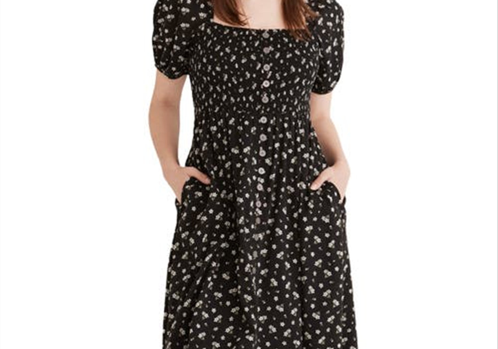 Flattering square-neck dress with smocked design | - Cute floral print for a feminine touch | - Perfect for casual or semi-formal occasions.