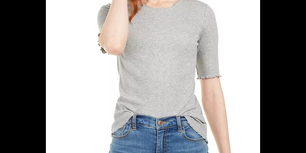 Maison Jules Women's Crewneck Elbow Sleeve Top Gray Size X-Large