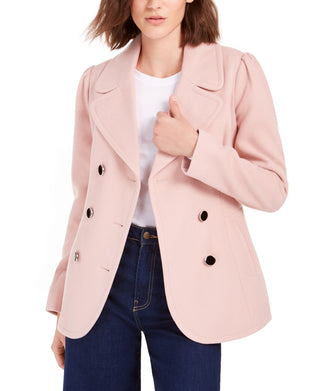 Maison Jules Women's Double-Breasted Notched Collar Pea Coat Pink Size Medium