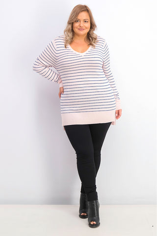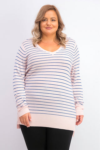 Maison Jules Women's Skinny-Striped Pullover Sweater Pink Size Medium