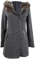 Attached hood with attached faux-fur trim; asymmetrical front zipper closure|Faux-leather trim at sleeves and pockets|Two pockets at front|Two pockets at front