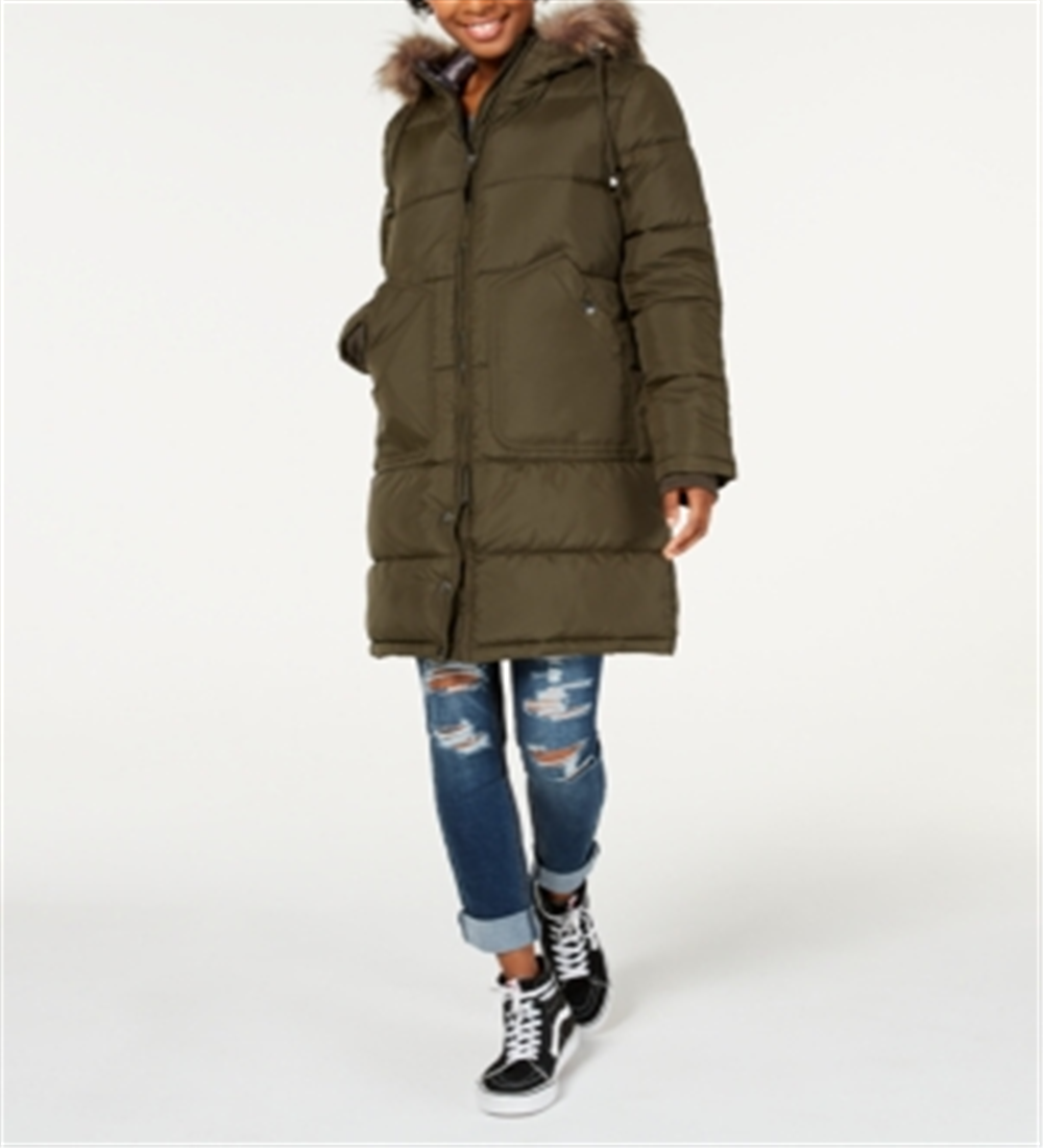 Maralyn & Me Junior's Faux Fur Trim Hooded Puffer Coat Green Size XX-Large