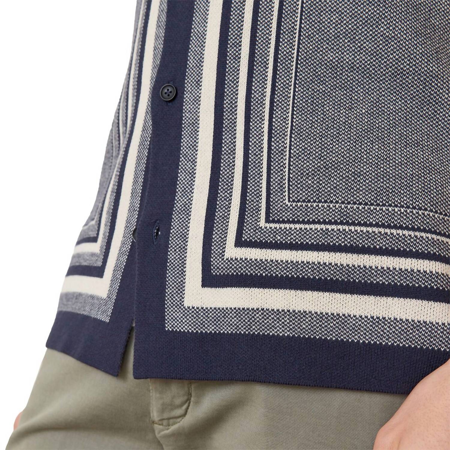 Marine Layer presents the Ethan Sweater Button-down Shirt, a masterful blend of style and comfort in a striking India Ink/Oatmeal color. This men's casual button-down shirt features a unique patterned jacquard stitch and comes with short sleeves for a relaxed yet polished look. Made from 60% Cotton, 40% Modal, it combines the elegance of a collared neckline with the practicality of a button closure. Easy to care for, this shirt is machine washable and can be tumble dried, making it a perfect minimalist piece for any spring engagement.
