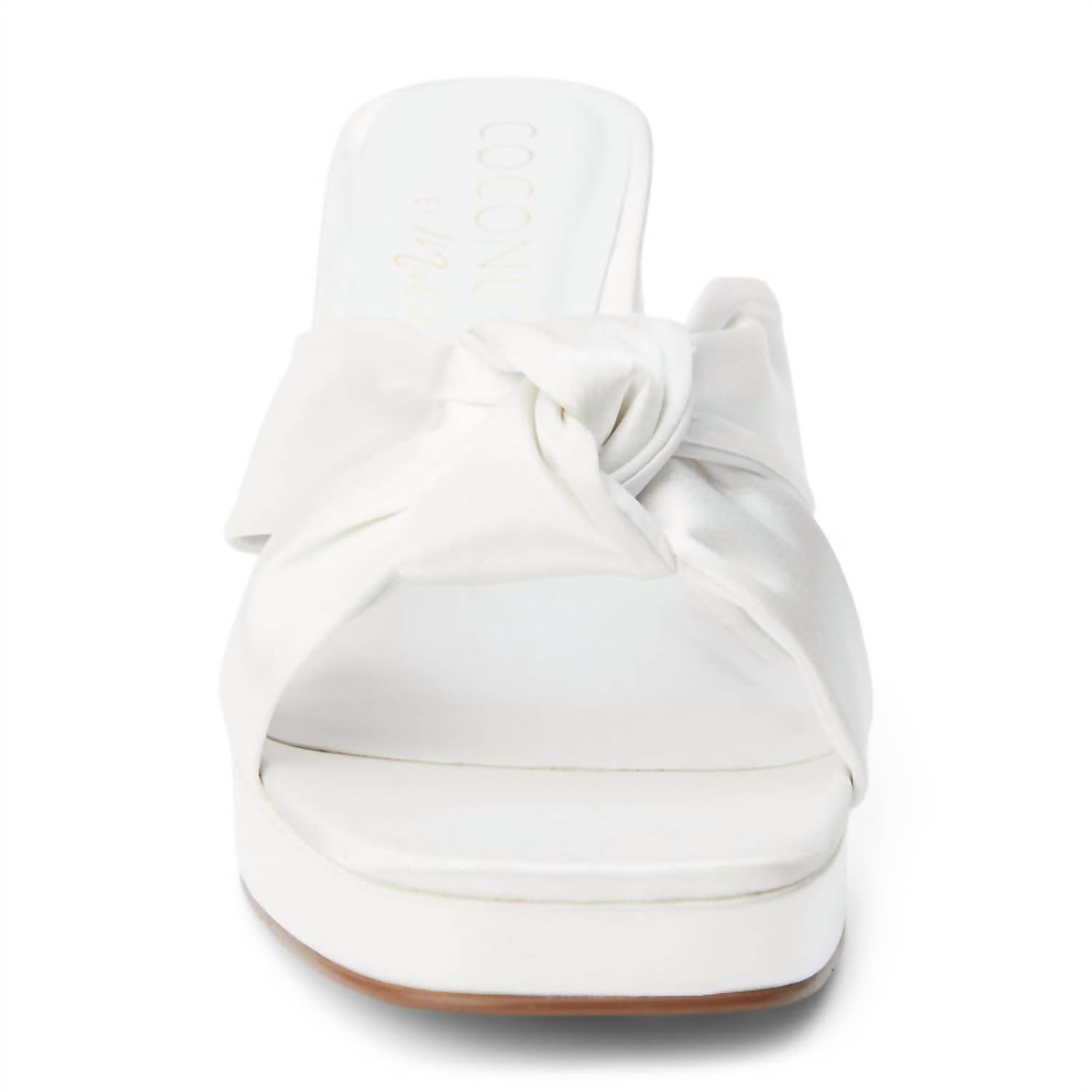 The perfect variation on one of our favorite trends this season. Chunky, platform heel with crisscross knotted upper. Textile upper. Manmade outsole. 3.5 in / 8.89 cm heel height. 1 in / 2.54 cm platform. Synthetic leather lining. Padded insole. Slip-on style