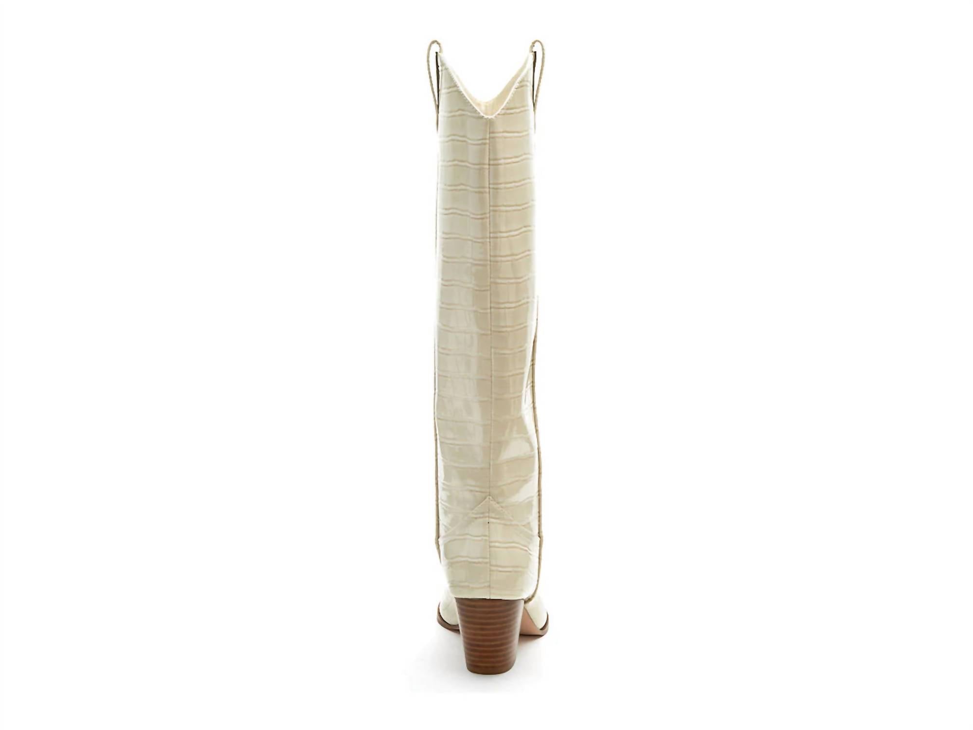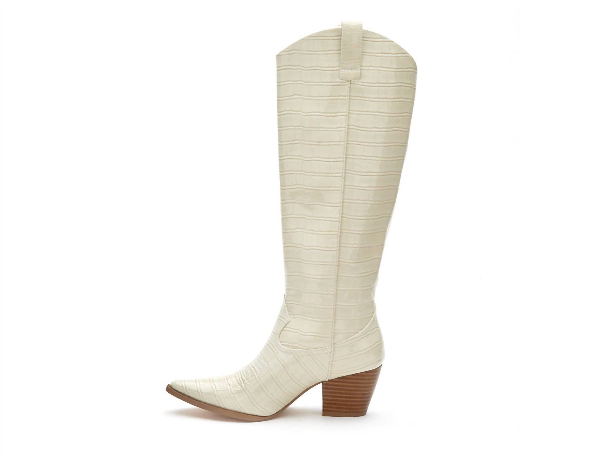 Upgrade your shoe game with these classic heeled boots, designed to merge sophistication and style. Comfortable enough for long days or a night out on the town. DESCRIPTION: The Jax boot has striped pattern and pointed toe to provide a trendy look to any of your outfits. This Western-inspired knee high boot has tonal stitching accents for a unique style and traction sole to deliver optimum support and stability. FEATURES: Synthetic upper. Pull-on. Pointed toe. Synthetic lining. Lightly cushioned footbed. Approx. 16" shaft height. Approx. 15" circumference. 2" stacked block heel. Synthetic sole. Imported