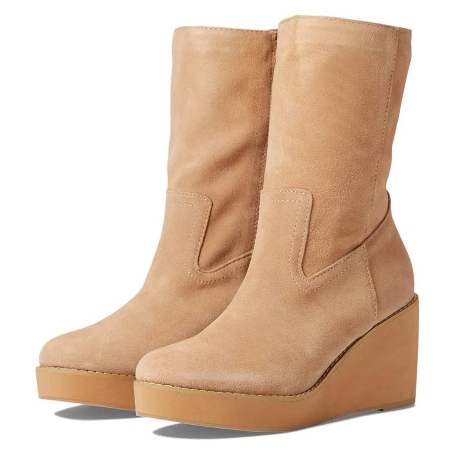 A stylish boot with a comfortable fit and the perfect amount of height. These classic boots are the perfect addition to any outfit and can be worn season after season. Step into style with the Women's Comet Wedge Boot by Matisse, a perfect addition to your fall wardrobe in a chic natural hue. Crafted with a soft suede upper, this boot features a comfortable 3.5-inch wedge heel and a 1-inch platform for added height. With an 8.5-inch shaft height and a round toe design, these boots offer a blend of fashion and comfort. Ideal for a preppy look at your next holiday party, the 13-inch boot opening ensures a perfect fit.