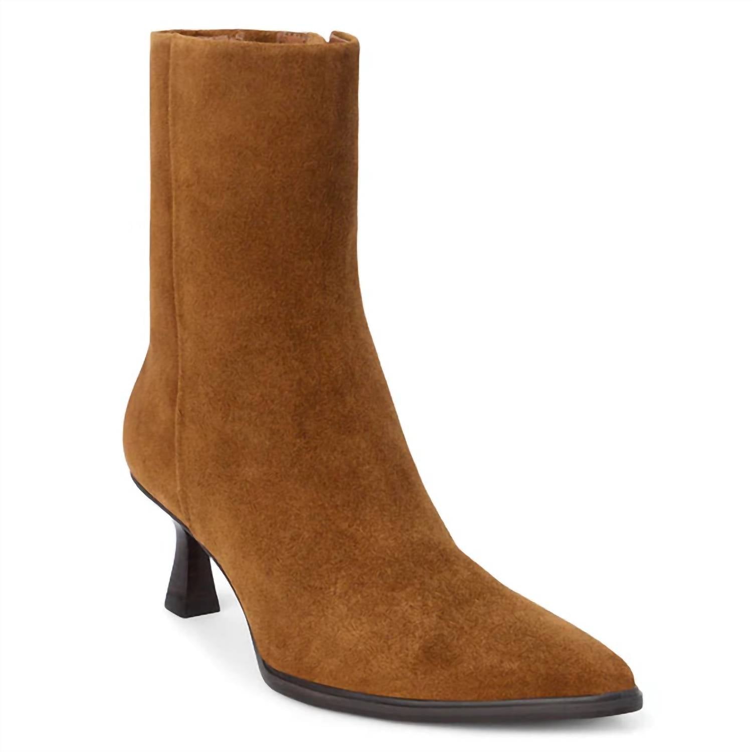 Say hello to the perfect, most versatile boot. The ankle height makes this style easily transition from day to night. Wear them with your favorite skinny jeans and tee for a more laid back look, or pair them with your favorite mini dress and jacket for a night out on the town. Step into elegance with the Women's Gabbie Ankle Boot by Matisse, showcased in a luxurious bourbon hue. Crafted from quality leather, this pointed-toe boot offers a sophisticated touch with a 1.75" kitten heel, making it a perfect choice for fall workwear or Thanksgiving festivities. Each pair has its unique suede variances, enhancing its charm and exclusivity. A fashionable yet functional addition to your wardrobe, the Gabbie Ankle Boot provides all-day comfort without compromising style.