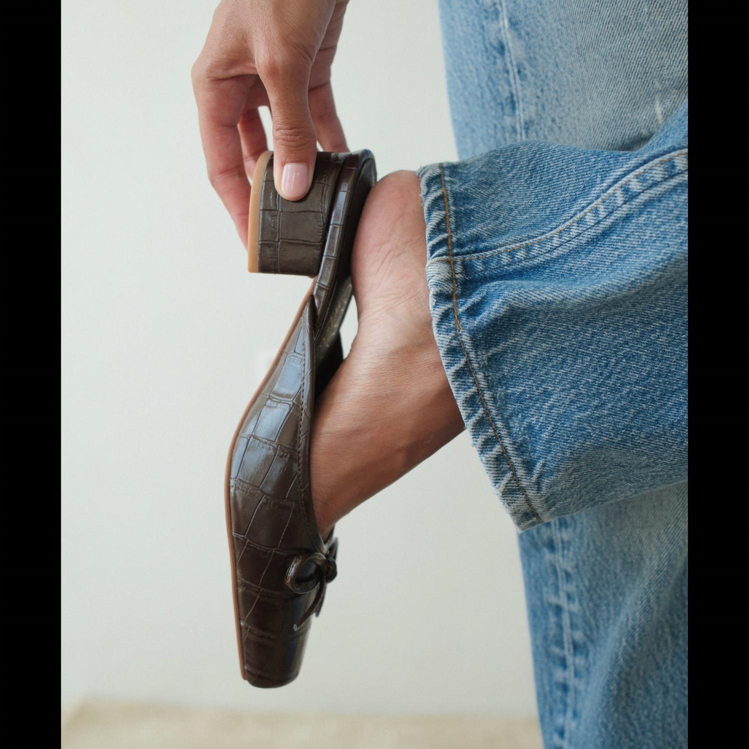 The Geneva Heeled Mule by Matisse is a sophisticated addition to your shoe collection, perfect for any fall occasion such as a dinner party. Crafted from embossed faux leather, this mule features a stylish croc print and a squared toe design for a touch of modern elegance. Its low block heel ensures comfort without compromising on style, while the delicate bow detail adds a feminine touch. This brown mule is an exemplary blend of chic and practicality for the discerning fashion-forward woman.
