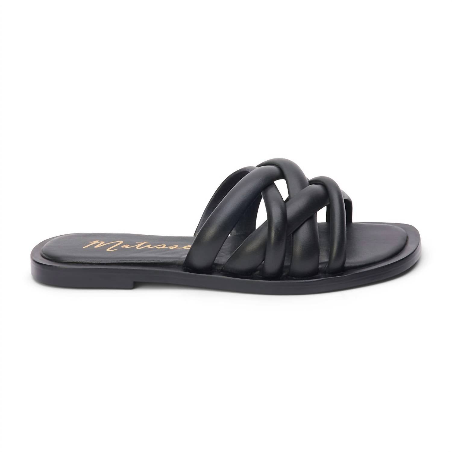 Loafers so versatile you can wear them with just about anything. Step out in style with the Women's Roy Slide Flat Sandal by Matisse, crafted for minimalist elegance. These black sandals feature a padded criss-cross design with a comfortable slip-on style perfect for sunny vacations or Mother’s Day outings. Made with a leather upper, leather lining, and a padded insole, they offer everyday comfort paired with a manmade outsole for durability. Handcrafted with unique natural leather variances, each pair is one-of-a-kind and imported for exceptional quality.