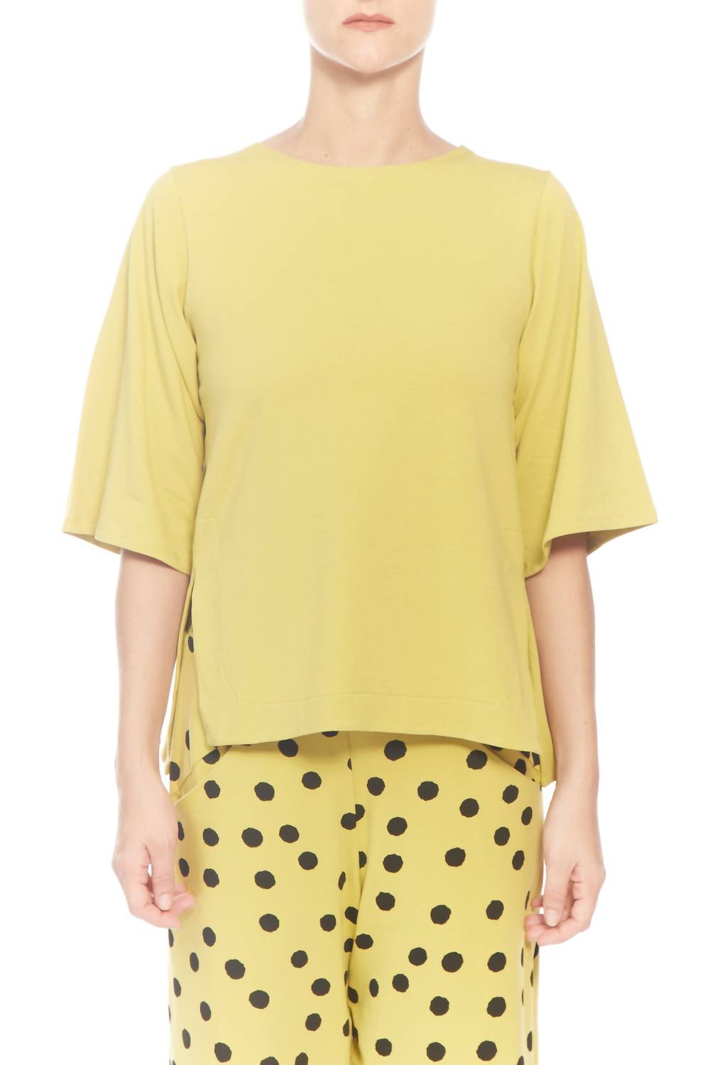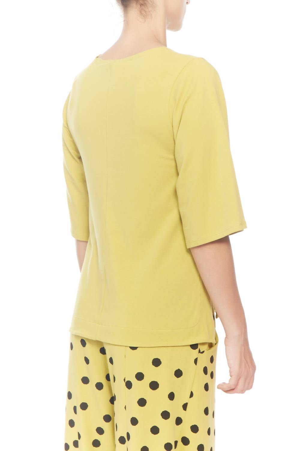 The short sleeve tee you'll want in every color. Embrace everyday elegance with the Avery Quarter Sleeves Top by Matthildur, a refreshing addition to your wardrobe in vibrant lemon. This piece offers elbow-length sleeves and a relaxed fit, crafted from 94% cotton and 6% lycra for flexibility and comfort. Details include a high round neckline, a vertical back seam, and side slits to ensure full mobility. With a convenient pull-on closure, this top is machine washable and can be tumble dried on low for easy maintenance.