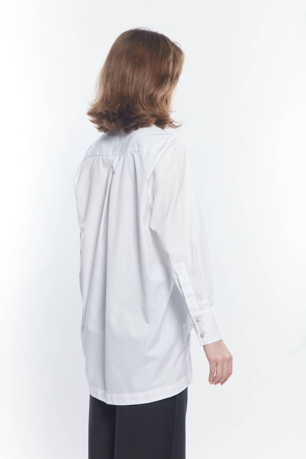 Perfectly tailored and soft to the touch. Elevate your wardrobe with the Classic Button Down Shirt by Matthildur, a timeless staple in a solid white hue. This shirt features long sleeves and is crafted from premium Pima cotton, providing a modern twist on the traditional boyfriend style with a straight front and longer back adorned with a pleasant pleat. Designed for women, it boasts a classic collar and a convenient button closure. Care for this versatile piece is effortless with machine washability and tumble dry instructions.